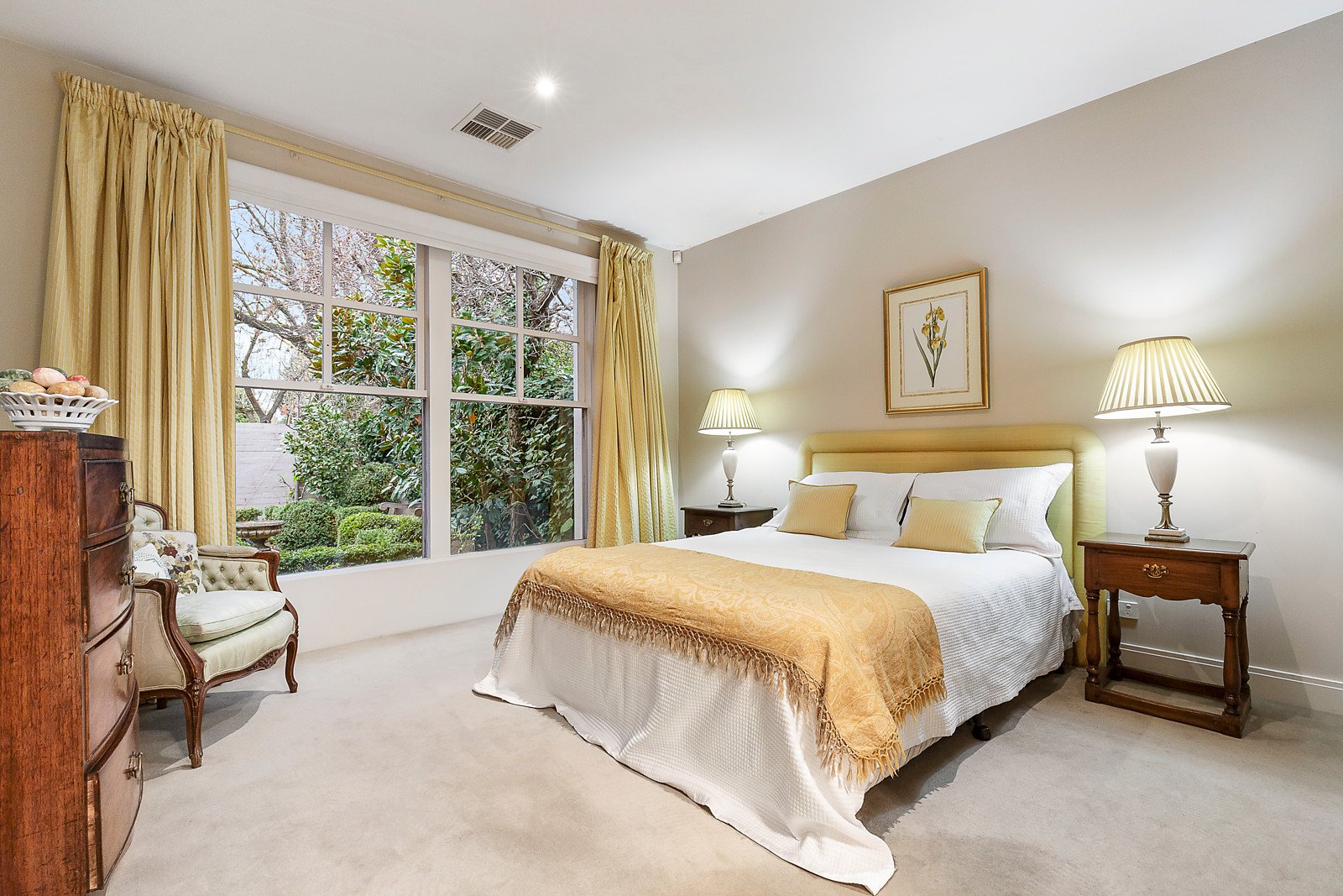 The generosity of scale is immediately apparent in the wide entrance foyer which flows through to a palatial sitting room with gas fire opening to both a west facing central courtyard and leafy east facing gardens. The inviting formal dining room and casual living/dining room with a gourmet stone kitchen surround a glorious private north-facing garden with large paved terrace shaded by a sun-awning. Enjoying a beautiful outlook to the serene garden forecourt, the main bedroom with chic en suite and walk in robe is matched by a second bedroom with built in robe, a stylish bathroom and a versatile retreat/TV room or 3rd bedroom.
