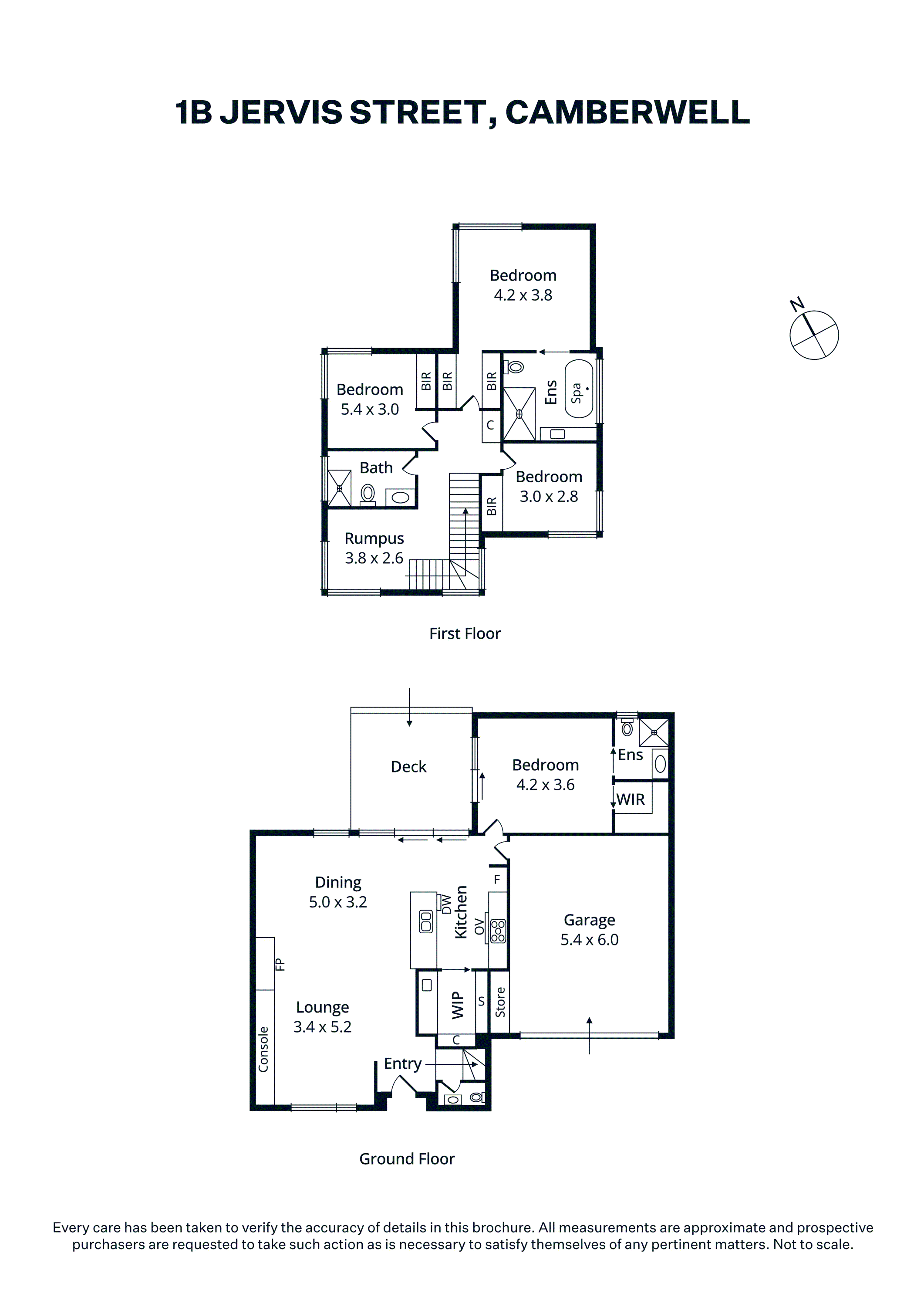 Behind its own independent street frontage on Jervis Street, an imposing timber door reveals sun-drenched interior spaces where high ceilings and oak floors accentuate the sense of space and light. The exceptionally generous open-plan living and dining room with a gas log fire is served by a gourmet kitchen appointed with Miele appliances including double ovens, soft-closing cabinetry and a butler’s pantry/laundry. Stacking glass sliders open the living area to a private north-facing courtyard with a large entertaining deck. Also opening to the courtyard, the serene main bedroom with walk-in robe and designer ensuite is matched upstairs by a second main bedroom with built-in robe and lavish ensuite with bath, two additional robed bedrooms, a sunny retreat and a third bathroom.