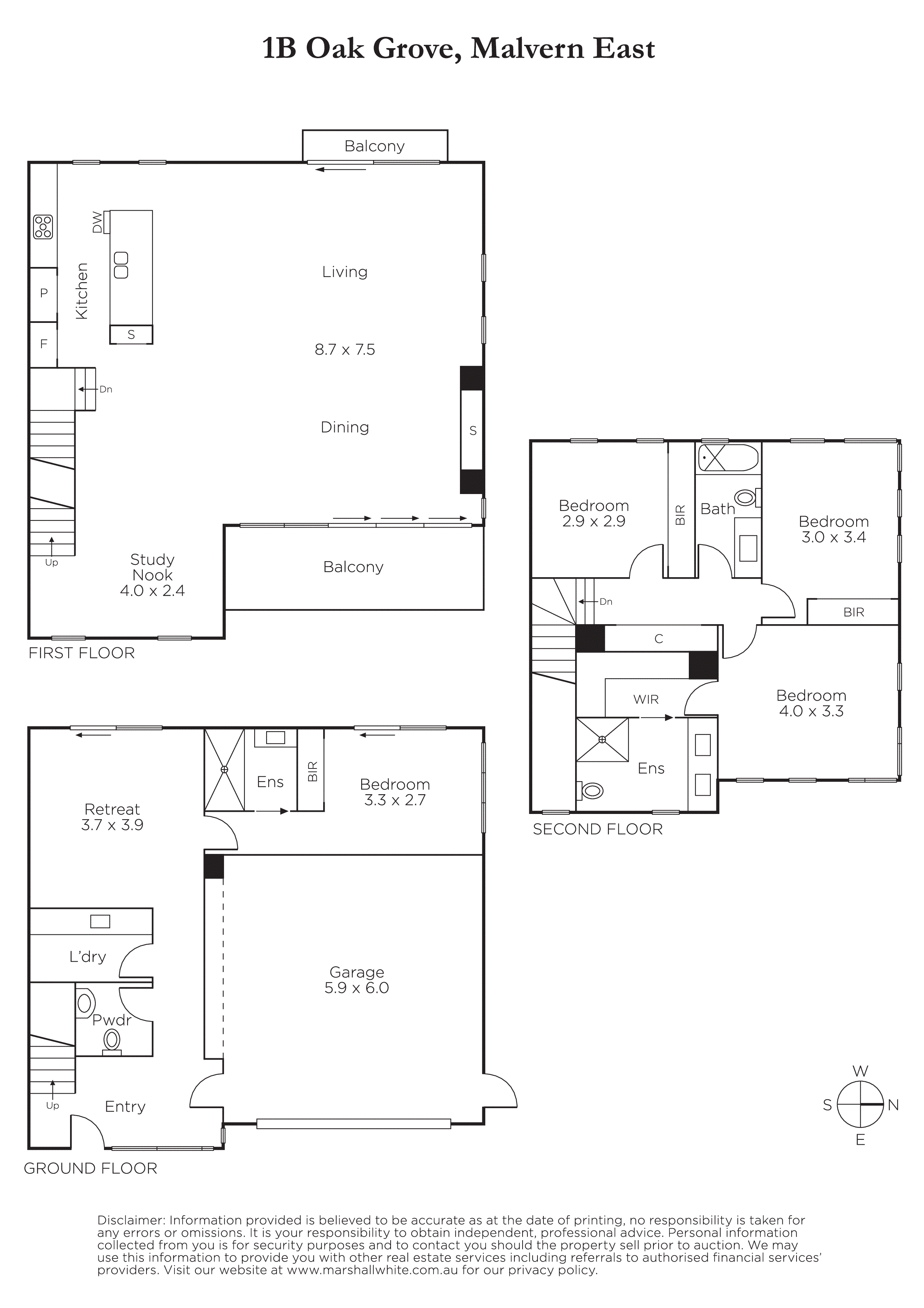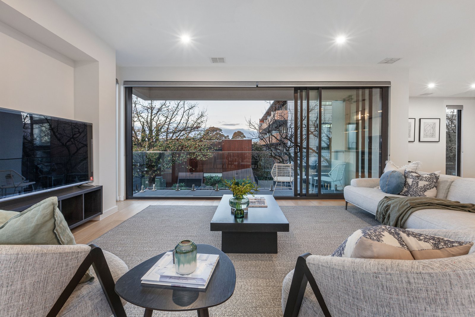 Just steps to Waverley Road's bustling shopping strip and the tram, only moments to Monash University and a host of primary and secondary schools, this luxurious townhouse in this blue chip Malvern East address offers the ultimate in large-scale designer living. Set over three magnificent levels, it delivers four bedrooms, three bathrooms, two living areas and a double garage with internal entry, making it ideal for contemporary families. Neutral interiors are underscored by high quality finishes of stone in the bathrooms and kitchen, with wide engineered timber floorboards in the living areas and carpet in all bedrooms. This upscale residence absolutely wows with the first level entirely devoted to living and dining. From everyday meals to intimate family gatherings and large large-scale functions, this space is an absolute winner with easy access to the balcony through glass sliders. The prestige kitchen includes a Miele oven and five burner cooktop, with grey stone benches, a stone island, overhead lights, white emporite cabinetry and black designer tapware. Also on this level, a study nook is easily accessible from the kitchen and living zone. Thoughtfully designed for extended family living, the ground level features a living room with courtyard access and a double bedroom with built-in robes and a luxurious ensuite. Up top, three bedrooms include the main suite with a walk-in wardrobe and sublime ensuite with dual vanities. Two additional robed bedrooms share a generous central bathroom of equally luxurious quality. More features of this captivating townhouse are its large laundry, powder room, ducted heating, video security and security entrance. In this prestigious leafy locale, this substantial opportunity is perfectly positioned just minutes to leading schools such as Lloyd St Primary School and St Mary's Primary School, several of Melbourne's finest secondary schools are also within easy reach, as is Monash University's Caulfield Campus, Ardrie Park, Central Park Gardens, Hedgeley Dene Gardens and Chadstone Shopping Centre.