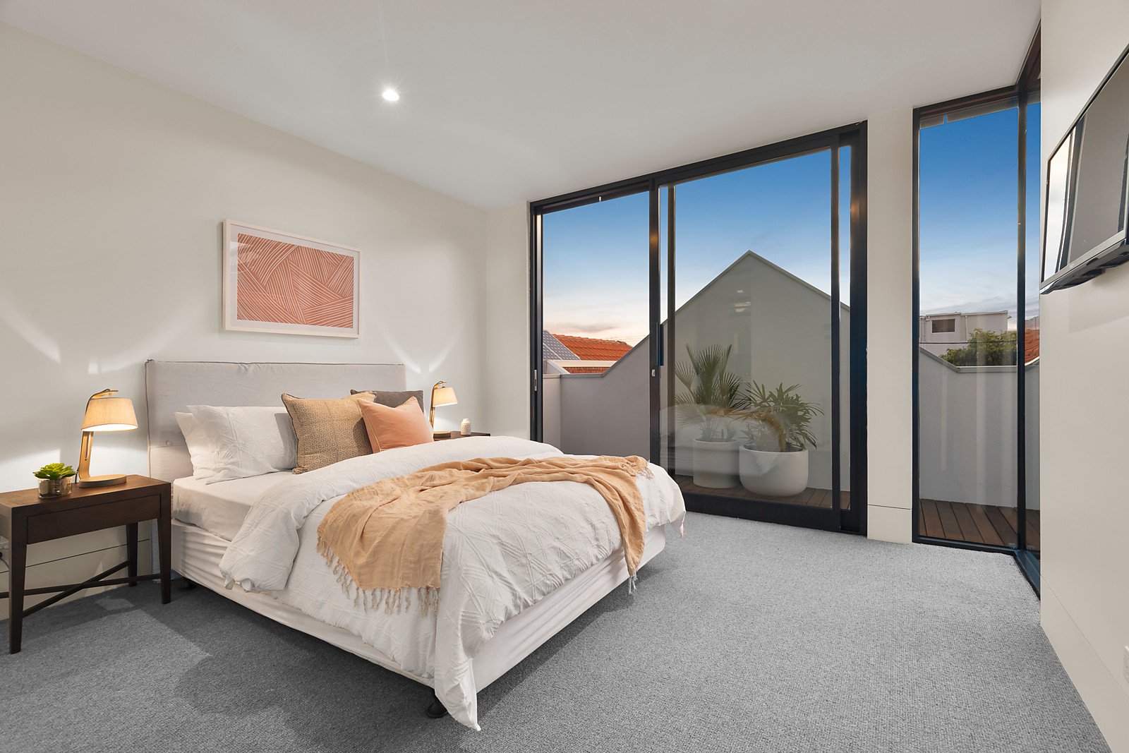 The state of the art kitchen boasting European appliances and a sensational living and dining room open through floor to ceiling glass doors to a private north-facing decked courtyard with built in BBQ. Upstairs, a large master bedroom with balcony, walk through robe and chic ensuite is further complimented by a study area.