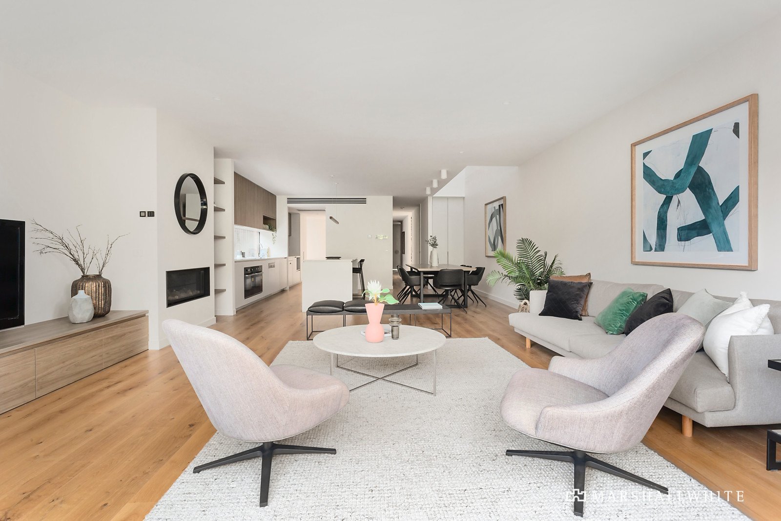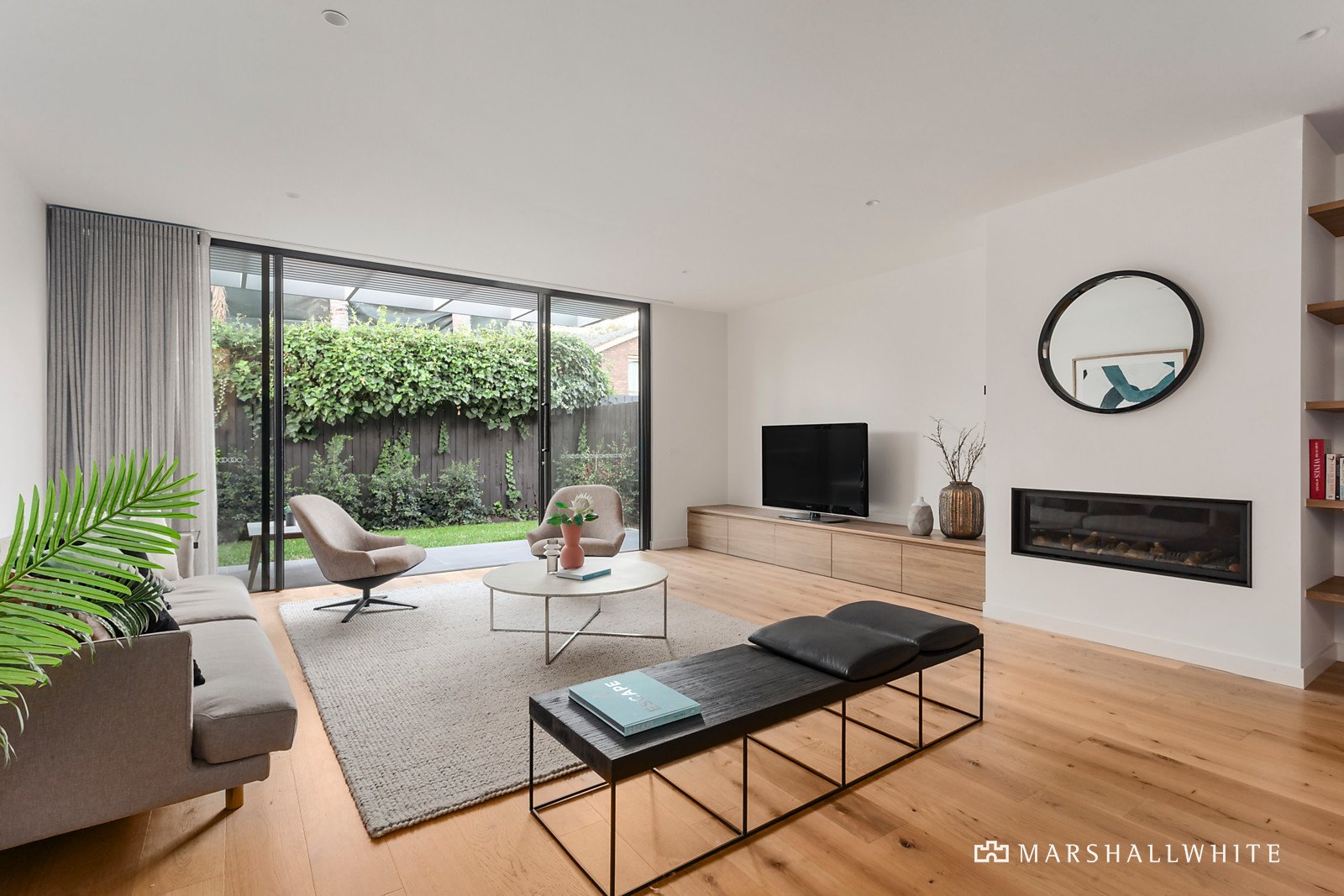 Nestled in a quiet court location in the heart of Caulfield South, this brand new eye-catching craftsman built, architecturally designed townhouse by Pleysier Perkins, with standout street front appeal conveys space, brilliant natural light & three levels of luxurious living. Stunning Engineered timber floors flow from the striking entry with exposed brick walls & timber panelling throughout the grand downstairs domain showcasing two light saturated living zones - a formal lounge & an open plan northerly oriented living & dining zone with gas log fireplace that integrates seamlessly with a rear alfresco area & landscaped garden, ideal for indoor-outdoor living & entertaining. The deluxe stone kitchen & butler's pantry with a suite of high-end Franke appliances (including 2 x ovens, induction cooktop, 2 x sinks & 2 x integrated dishwashers) & exquisitely crafted soft close cabinetry will impress. Retreat up the striking timber cantilevered staircase or take the elevator up a level to reveal a luxurious main bedroom with expansive built in robes, luxe ensuite & garden outlook & a further three bedrooms with built in robes, serviced by a sparkling central bathroom. The basement level delivers secure car parking & storage. This exceptional 6 star energy rated home also features a stylish powder room, laundry, ducted heating/cooling, video intercom entry, alarm, 5KW solar system, elevator servicing all 3 levels, & substantial storage throughout. All superbly positioned in a prime locate within the coveted Caulfield South Primary School zone close to vibrant cafes, local shopping strips, magnificent parklands & transport.