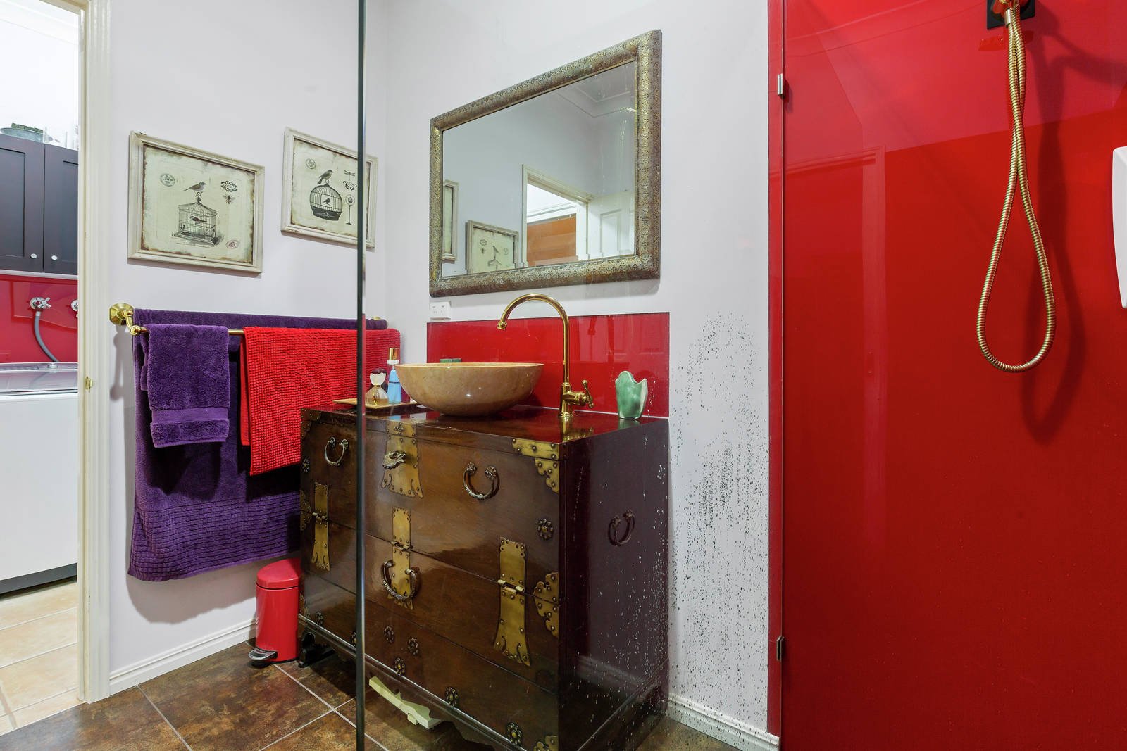 Both bedrooms are a great size, the front room with fitted shelving and walk-in robes, the rear master with walk-in robe. Both are serviced by a combined laundry/2-way ensuite bathroom with tinted glass walls for easy maintenance.