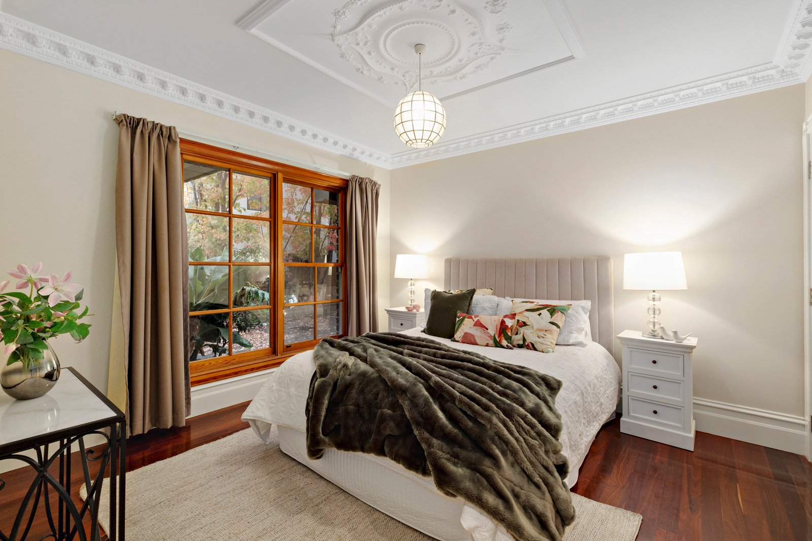Beautifully finished with ornate cornices and rich Jarrah floors, the expansive living room with a marble fireplace opens to a private garden courtyard. The gourmet kitchen featuring stone benches and a 90cm Ilve oven and the light-filled dining area also opens to the leafy courtyard, an ideal space for al fresco dining. The gorgeous main bedroom with built in robe and lavish ensuite is conveniently positioned on the ground level while upstairs there are two additional robed bedrooms and a stylish bathroom with separate toilet.