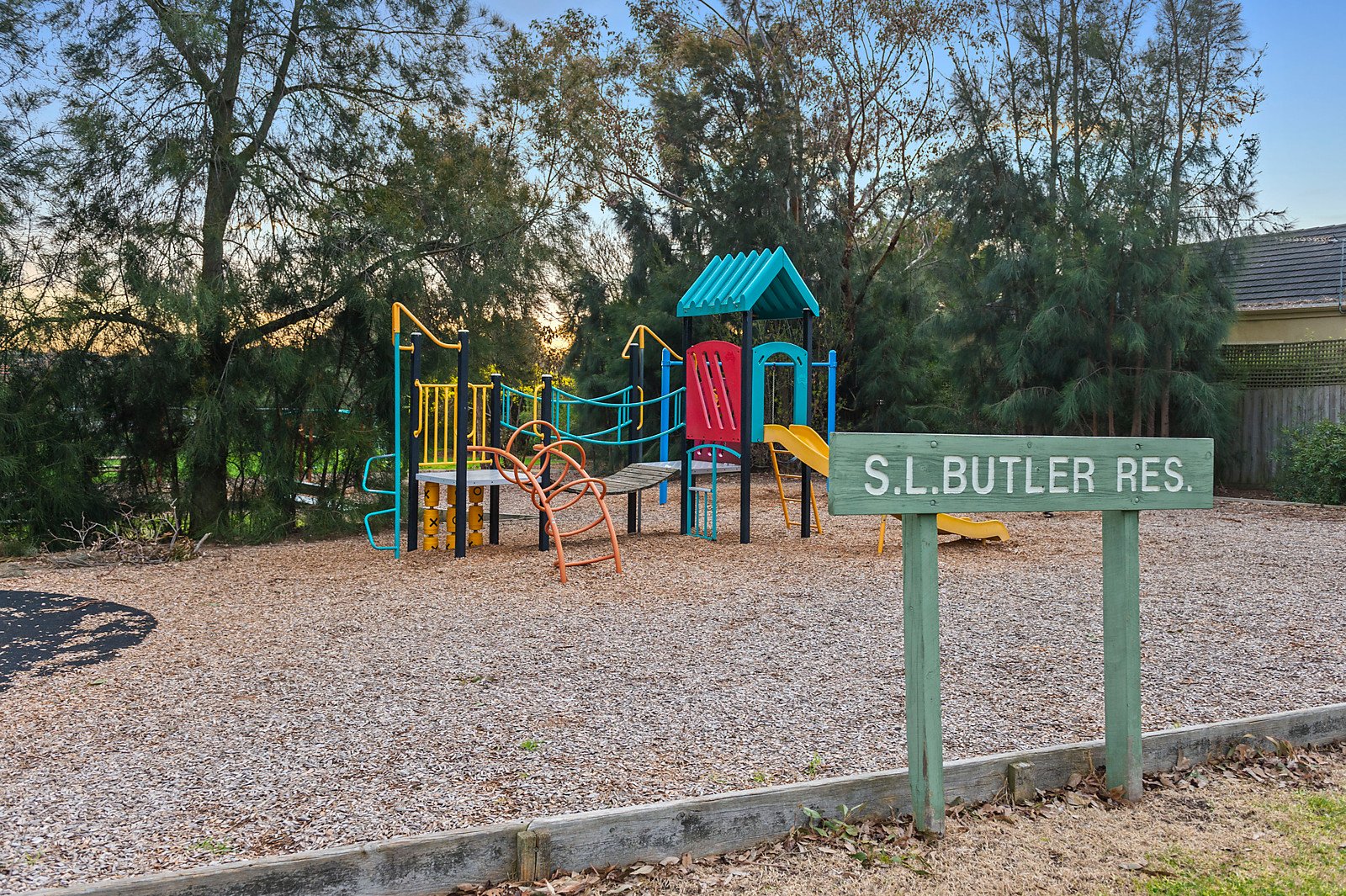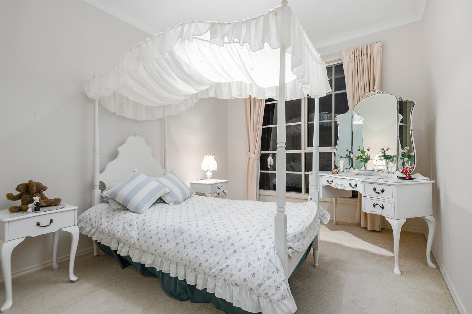 Inside, heightened ceilings and a warm, neutral colour palette work together to create a familiar and inviting environment. The free-flowing and spacious family domain encompasses generous living with a bay window, dining, and an immaculate kitchen complete with spacious pantry, ample storage and dishwasher. A glass slider and expansive windows allow the outside greenery to spill inside, adding a lovely dimension to the neutral space.