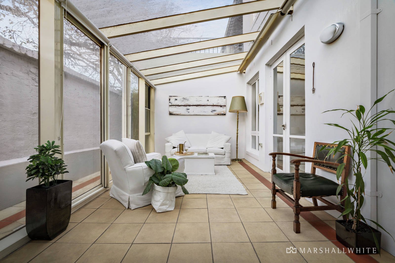 An expansive living room warmed by a gas log fire is accompanied by a generous light-filled dining room featuring parquetry floors and served by a gourmet kitchen appointed with stone benches and Bosch appliances. Bathed in northern light but shaded by glorious oak trees and sunblinds, a glass enclosed courtyard is a perfect "wintergarden" for year-round living and entertaining. The beautiful downstairs main bedroom with ample built in robes and a stylish en suite also opens to the enclosed courtyard. Extra broad stairs lead up to two double bedrooms with robes, a chic bathroom with separate toilet and a large north-facing terrace offering picturesque views over Central Park.