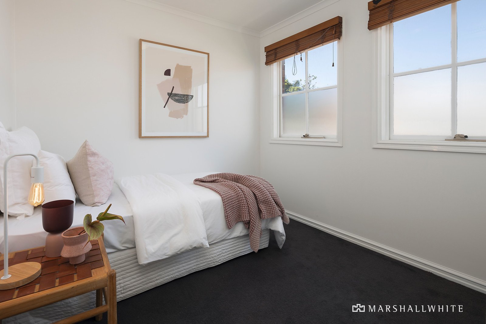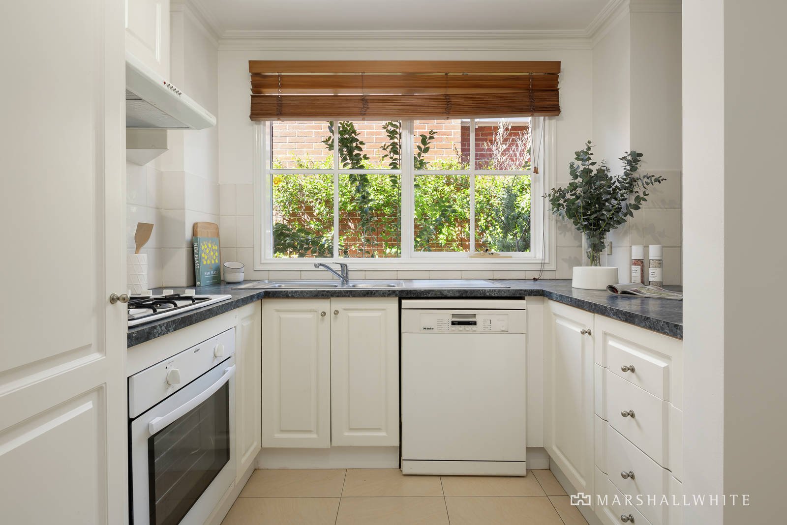 Blissfully connected to a surprisingly peaceful, private and sunny courtyard, the home's kitchen / dining / living has been thoughtfully designed and appointed with a Chef oven as well as timber-look flooring, whilst upstairs a trio of robed bedrooms are wonderfully quiet. Additional highlights of this attractive haven of tranquility include a lock-up garage, double robes in the main bedroom, an upstairs bathroom, downstairs powder room, laundry, central heating and evaporative cooling.