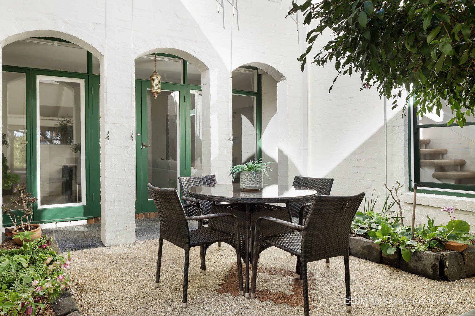With its own street frontage this appealing townhouse has styling reminiscent of a Spanish villa with its rendered facade and arched verandah. The recently refreshed interior features an entrance foyer with vaulted ceiling leading to a generous living and dining room opening through French doors to a front walled courtyard garden - ideal for indoor/outdoor entertaining; plus a modern kitchen, powder room and laundry. There are three upstairs bedrooms or two plus a study, main with a WIR and a family bathroom. Other features include R/C air conditioners, Rinnai wall heater (living), rear courtyard with garden shed plus an off-street carport at the front.