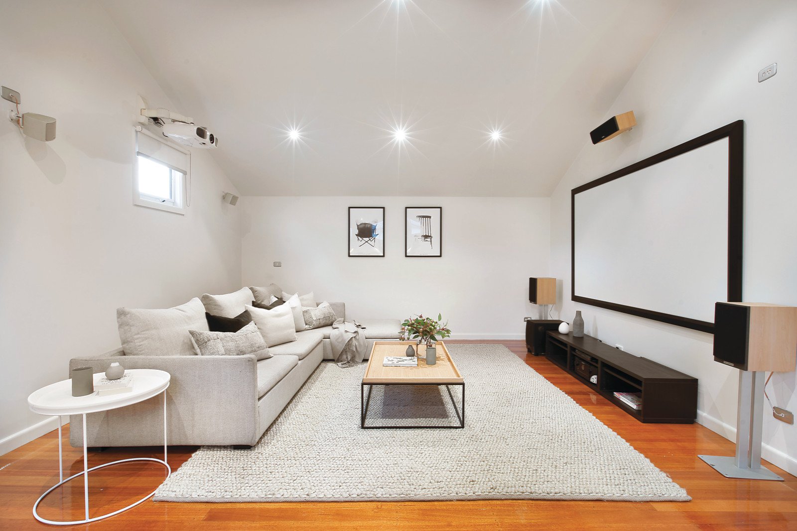 Timber floors flow through the entrance hall to a generous, light-filled living and dining room served by a gourmet Bosch kitchen with stone benches. The living domain extends out to a private landscaped paved garden with built in BBQ and through bi-fold doors to a 2xgarage that doubles brilliantly as a recreation room. Two double bedrooms with built in robes and a stylish bathroom are downstairs while on the level above there is the main bedroom with walk in and built in robes, stunning en-suite and a spacious fully appointed home cinema room/fourth bedroom.