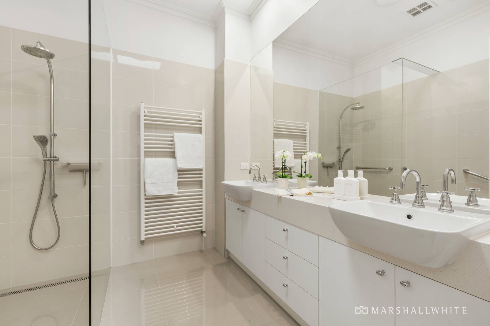 In a tranquil enclave, it includes hydronic heating, RC/air-conditioning, ducted vacuum, laundry, plantation shutters, storeroom and internally accessed double garage.