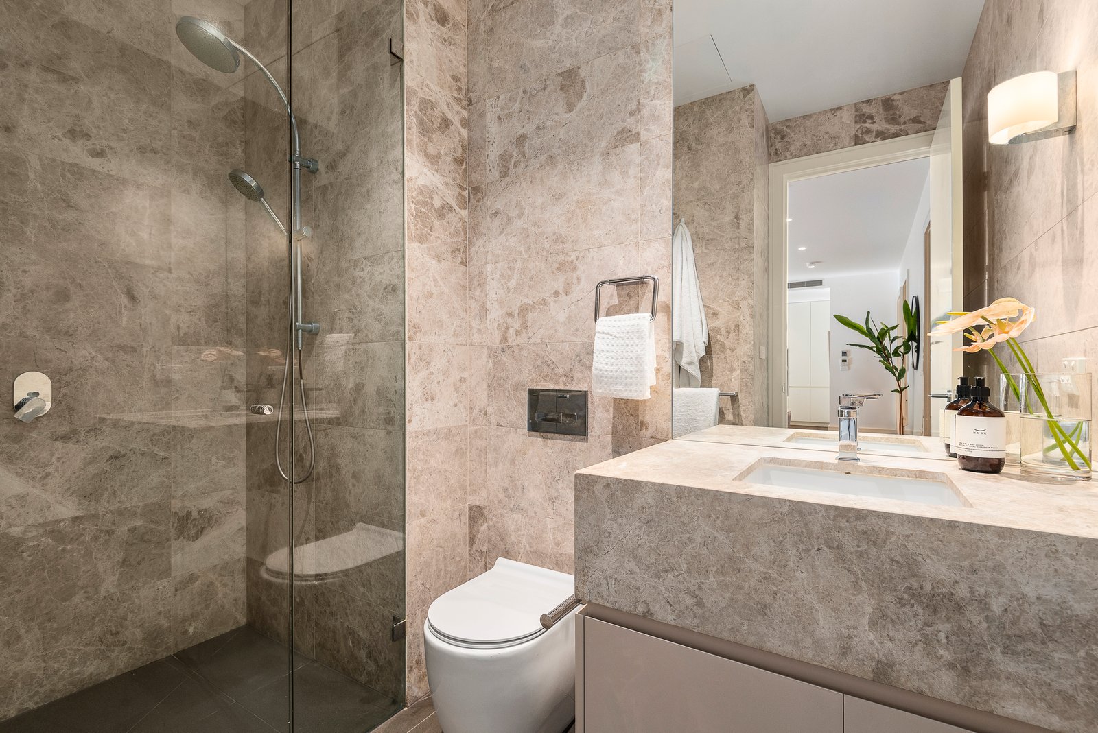 Situated in the Christopher Doyle architecturally designed Stonington Maison Apartments, this ground floor residence is a fine display of cutting-edge style, premium quality and pure lifestyle sophistication. Exquisite oak floors, custom joinery and high-end marble finishes, create an atmosphere of opulent refinement and unrivalled luxury throughout open-plan living/dining, with three sets of doors unfolding to a large paved northerly terrace – ideal for indoor-outdoor entertaining.