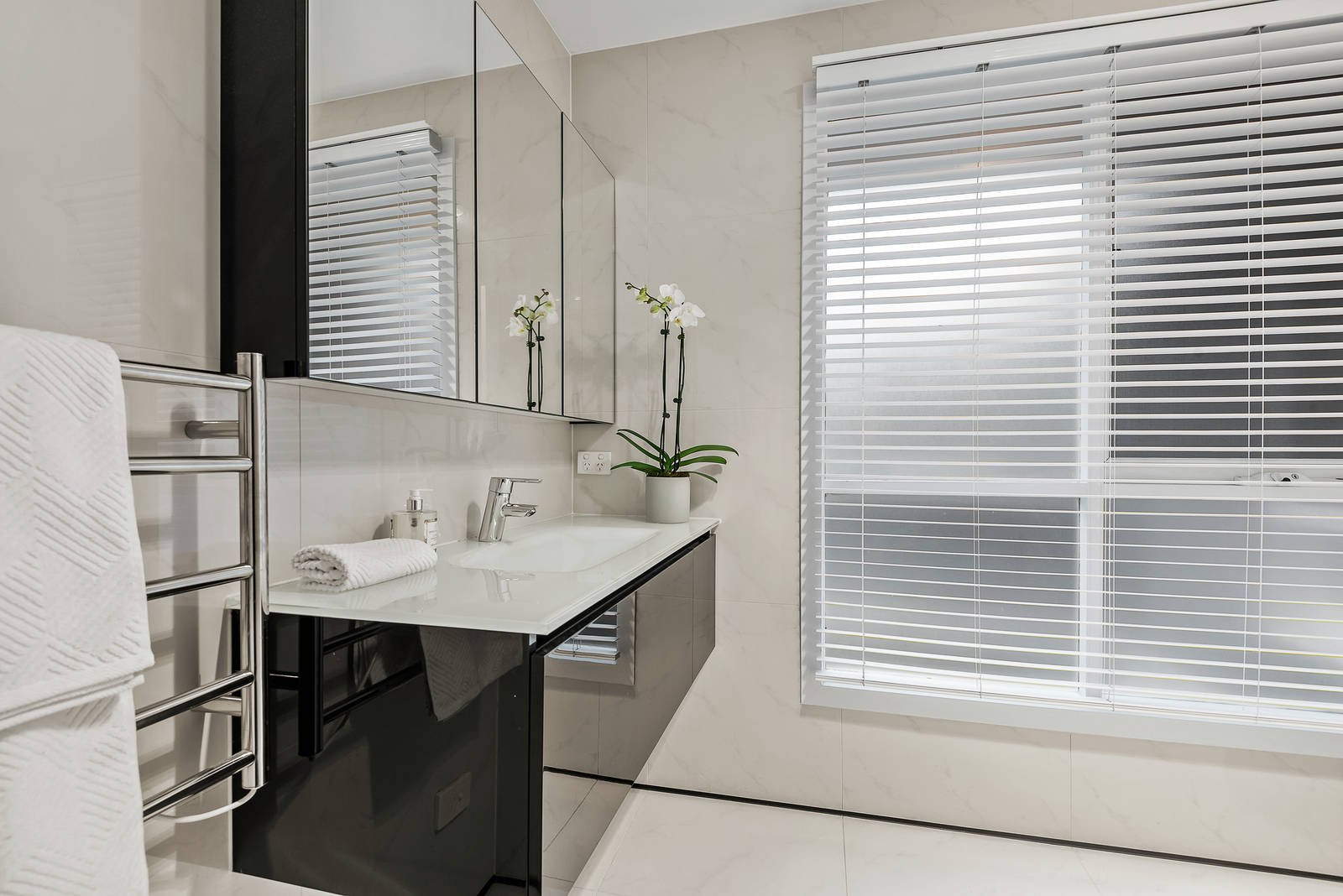 A crisp white decor enhanced with Plantation shutters delivers a stylish contemporary ambience to the spacious interior. Downstairs features high gloss timber floors through a living room, dining area and sleek CaesarStone kitchen equipped with Neff appliances plus an adjacent laundry and WC. All flowing to a wide north-east facing deck with plenty of space for indoor/outdoor relaxation or entertaining friends and family. Three generous bedrooms are located upstairs, main with a WIR and fully tiled ensuite two with BIRs plus a family bathroom and Juliet balcony. Other features of this attractive home include R/C air conditioners (both levels), gas ducted heating and a remote double garage with access via the rear deck as well as a permit for on-street parking for one car.