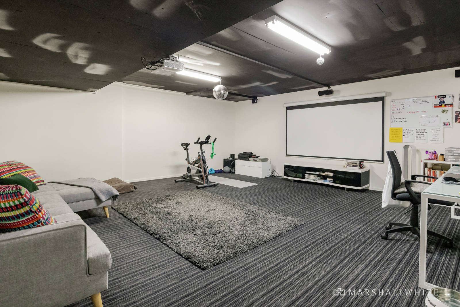 Behind a high walled sunny courtyard, smoky oak floors flow through the entrance hall to an expansive open plan living and dining room and gourmet kitchen appointed with 2 AEG ovens and stone benches. Glass sliders open the living spaces to a wide west-oriented paved courtyard, perfect for outdoor dining and entertaining. The gorgeous main bedroom with walk in robe and lavish en suite opens to the forecourt while upstairs, there is a second double bedroom with designer en suite and built in robe, a third bedroom with robes, a stylish bathroom with freestanding bath, a retreat and fitted home office/4th bedroom with dual work-stations and balcony offering city glimpses. On the basement level, there is a versatile and spacious home theatre or gym, a storeroom and 2 car-spaces.