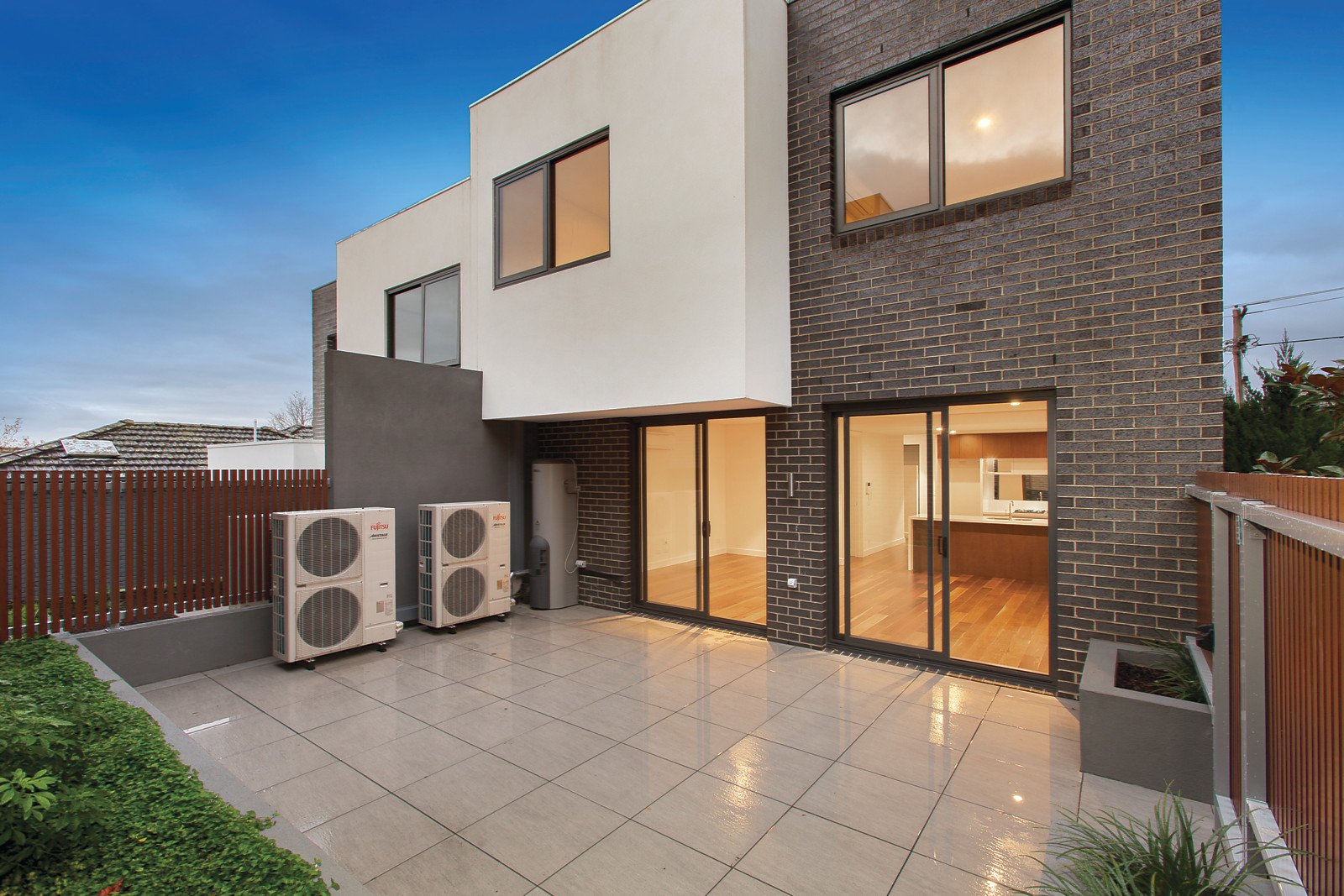 Strong architectural lines and quality finishes complement family-sized proportions within this contemporary three bedroom townhouse of 252sqm (approx.) in a superb location in close proximity to Balwyn High (Balwyn High School Zone), Balwyn Village and the 109 tram. Versatile spaces include formal sitting and adjacent open-plan family living featuring a sleek kitchen with stone benchtops and Smeg appliances, opening through floor-to-ceiling glass to a landscaped private courtyard. Additional basement level features media lounge, laundry and access to a huge double garage. A light-filled first floor completes the offering with three generous bedrooms all with BIRs (main with dressing area) sharing a sizeable retreat with views to the surrounding area. Further functional features include powder room and intercom.