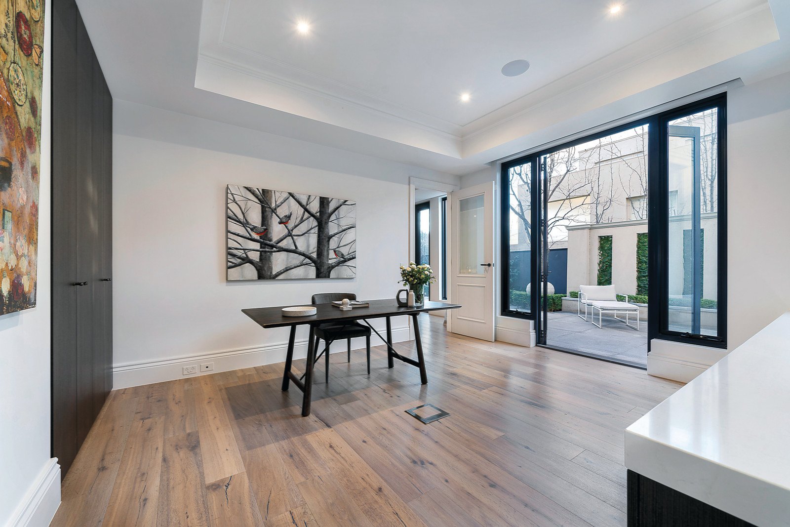 Impressively showcasing signature Christopher Doyle architectural design with interiors curated by Gillianne Griffiths, this luxurious ground level residence's magnificent dimensions deliver the ultimate in classical elegance and contemporary refinement in an exclusive and secluded setting just metres from Toorak Village.