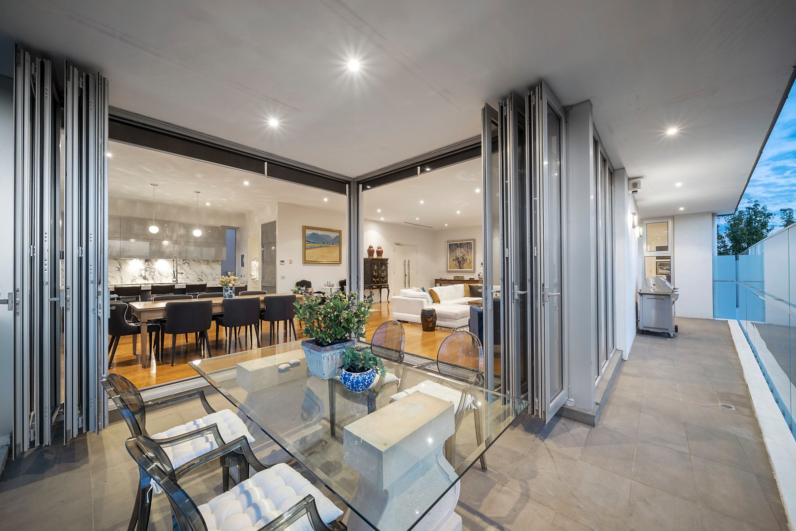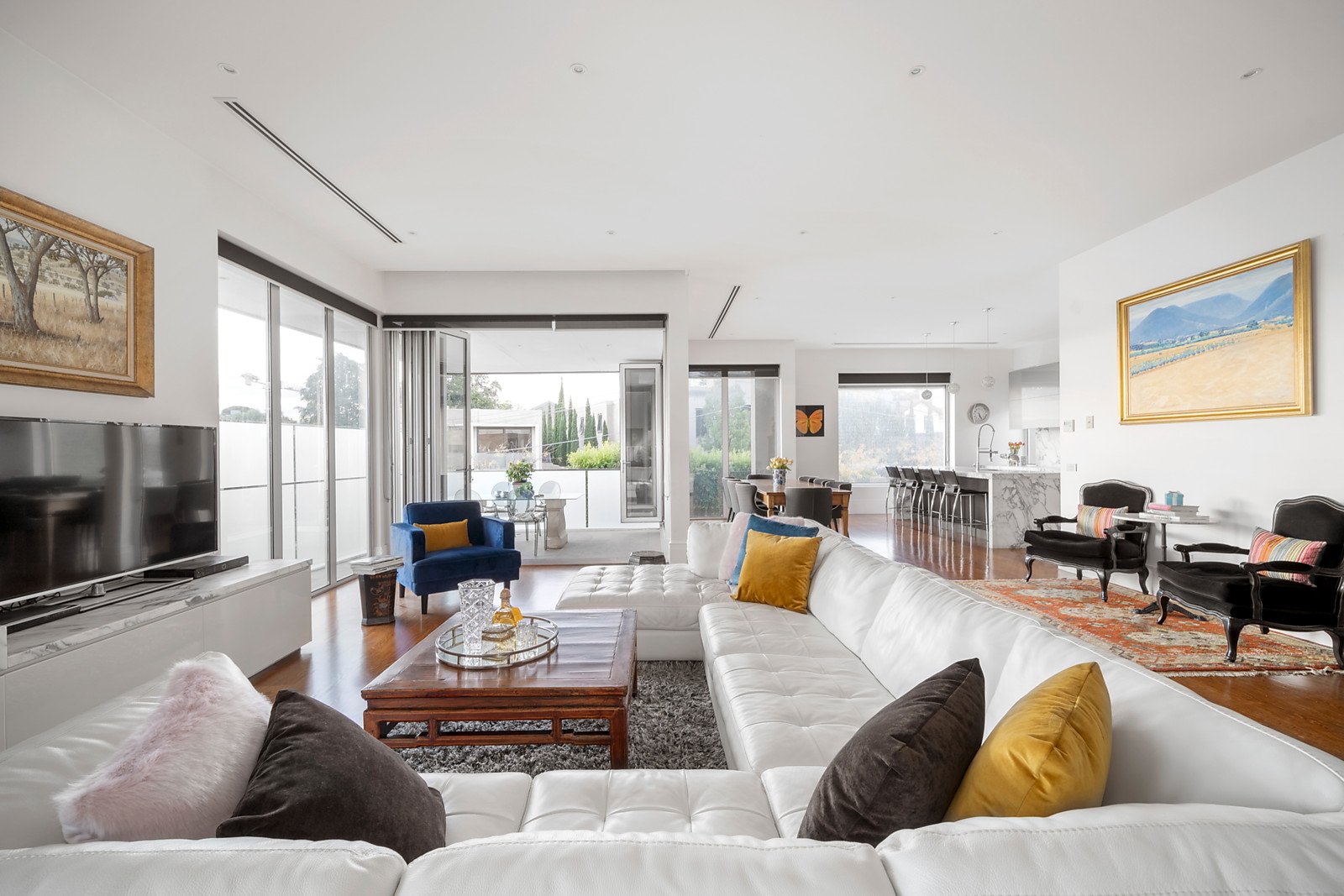 Located in a quiet cul-de-sac, only steps from Toorak Village, this stunning first floor apartment (312sqm approx.) offers generous light filled open plan living and dining spaces with feature marble fire place leading out to a well sized north-facing terrace, ideal for entertaining. A superb gourmet marble kitchen is appointed with Gaggenau appliances, two double bedrooms with luxurious en-suites and walk in robes, custom formal den/study or third bedroom, central bathroom plus the benefit of a versatile office/guest suite/home theatre room with own ensuite. Features include private lift, heating and cooling, security, an abundance of storage, basement garaging for up to 4 cars and in a boutique building of only 2 residences.