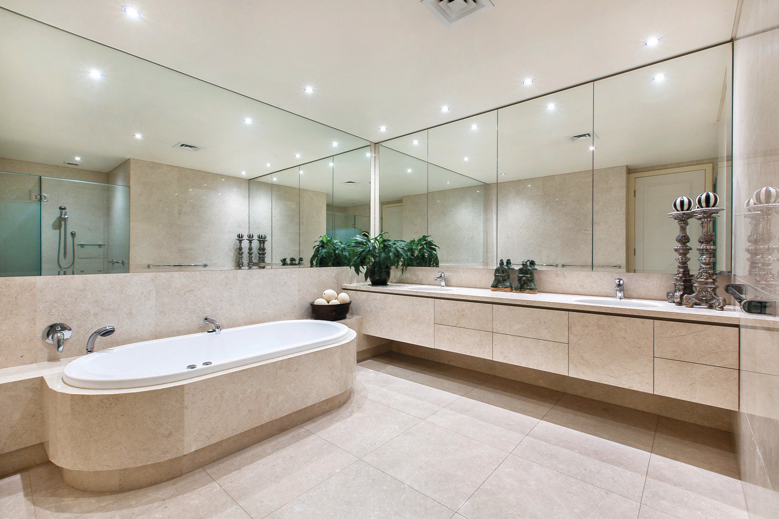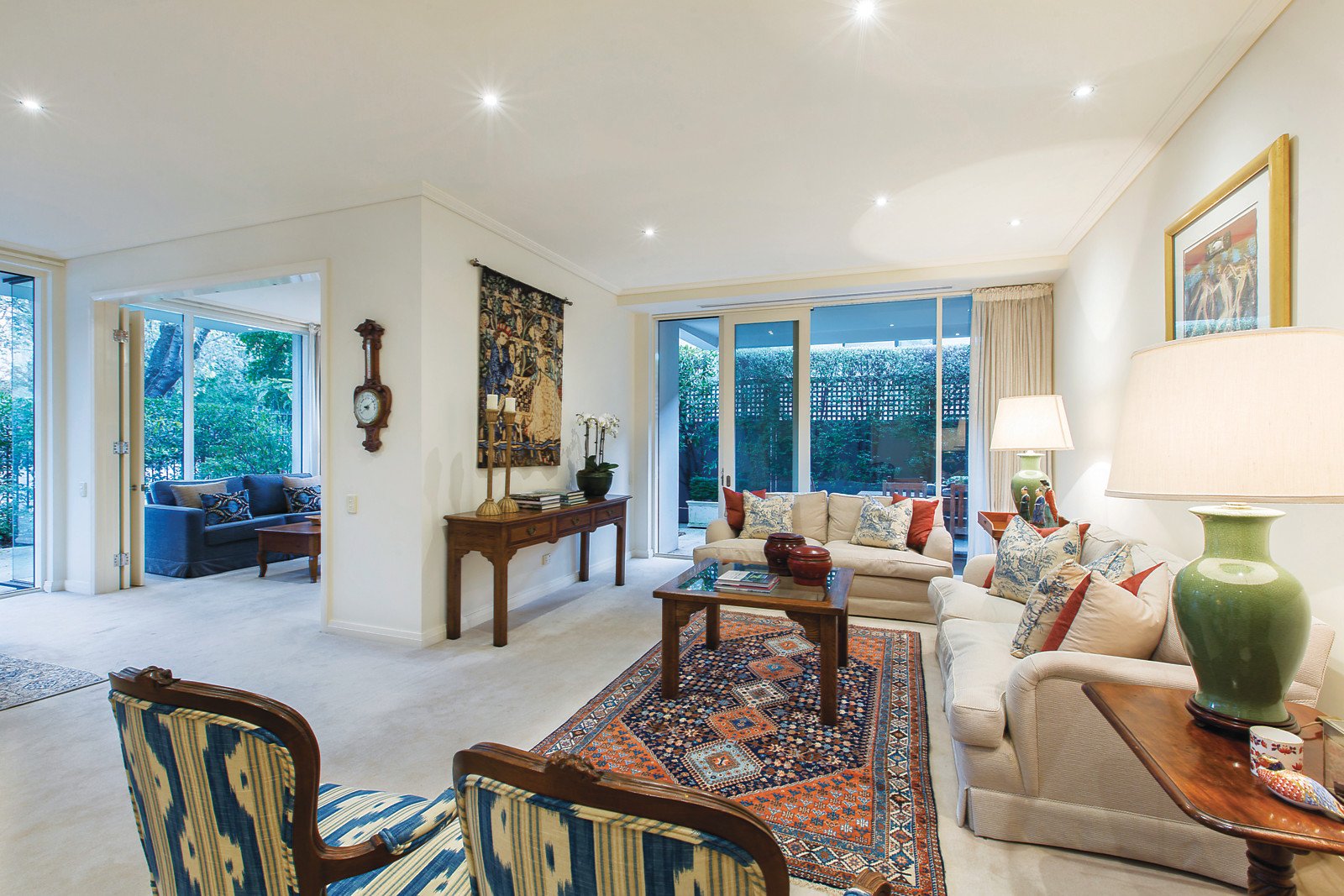 An elegant suite-style main bedroom offers extensive built-in wardrobe space, private outlook onto lush foliage and marbled ensuite complete with walk-in shower, spa bath and toilet. An equally impressive second bedroom can also be found featuring garden views and a stylish ensuite.
