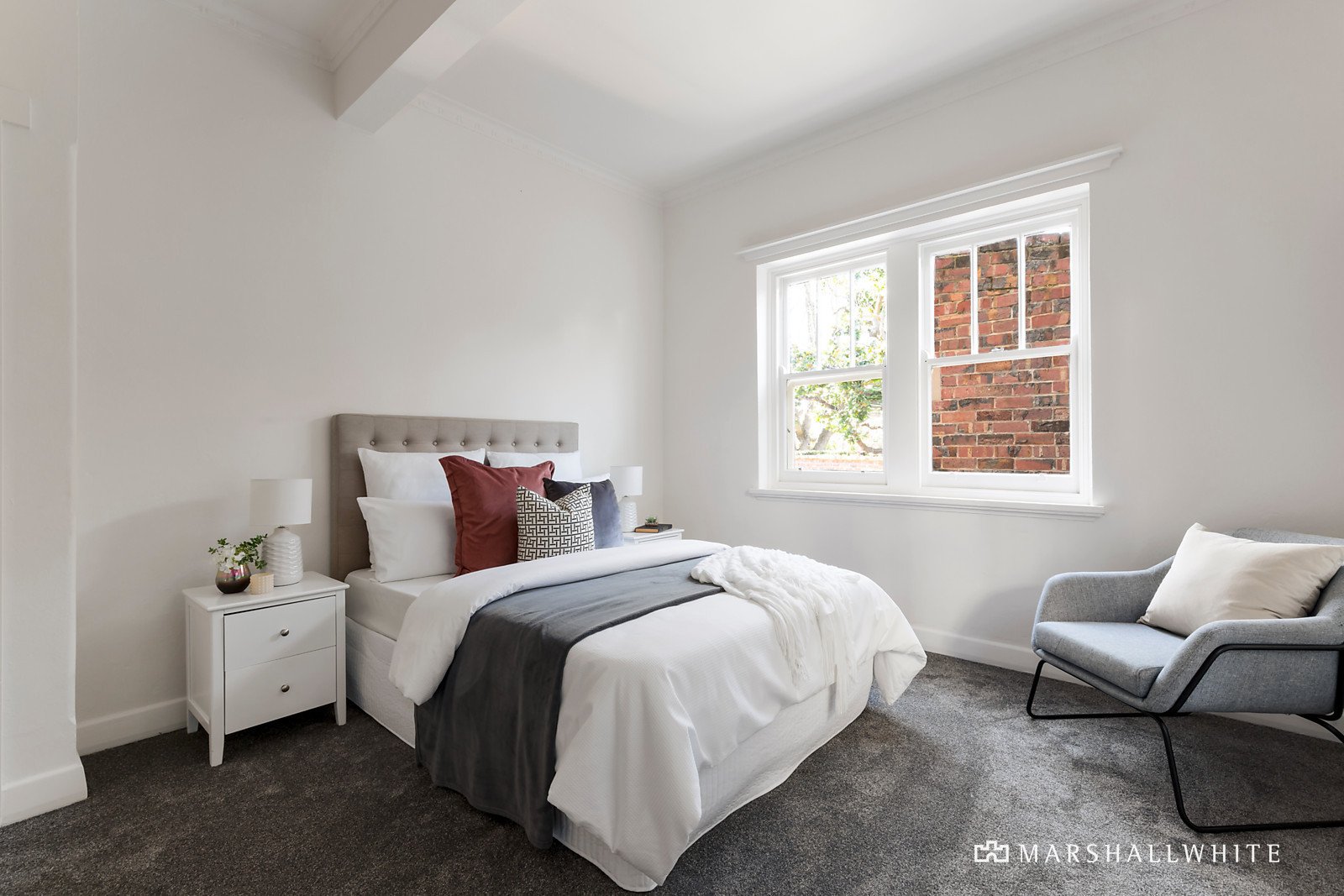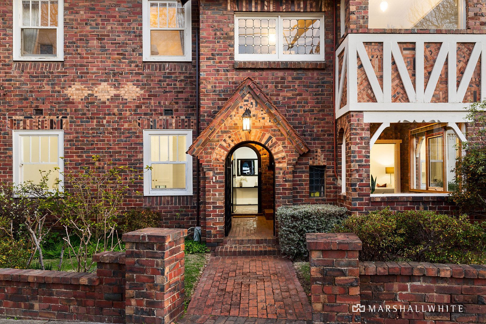 Perfectly positioned back from the main road with side street access, this 1933 Tudor-style residence offers an abundance of classic period elements combined with exceptional, low-maintenance lifestyle appeal. High ceilings and impressive proportions enhance this captivating apartment, one of only four in this magnificent property located in a highly convenient and sought-after neighbourhood. Via delightful, manicured garden surrounds, an arched entrance opens to a vast, light-filled living area featuring impeccable period details and decorative open fireplace, leading to a charming, sunlit, exposed brick study or sunroom. The spacious and elegant formal dining room with leafy outlook flows to a walk-through pantry/storage space and into a pristine kitchen offering storage options and outdoor access. Steps lead from the kitchen down to a courtyard area accessing a laundry, outdoor WC, and single, lock-up garage. Towards the rear of the apartment, a serene and generous bedroom comprises shelving and ample built-in robe space, with a second sizeable bedroom presenting ample natural light and built-in robes adjacent to a bright bathroom and separate powder room. Additional appointments include ducted heating, freshly painted interior, new carpets, and ample storage. Close proximity to public transport options including Toorak Road trams, Monash Freeway, Kooyong Train Station, Armadale and Hawksburn boutiques and dining, Tooronga Village shopping, The Kooyong Lawn Tennis club, an array of excellent schools and parkland areas.