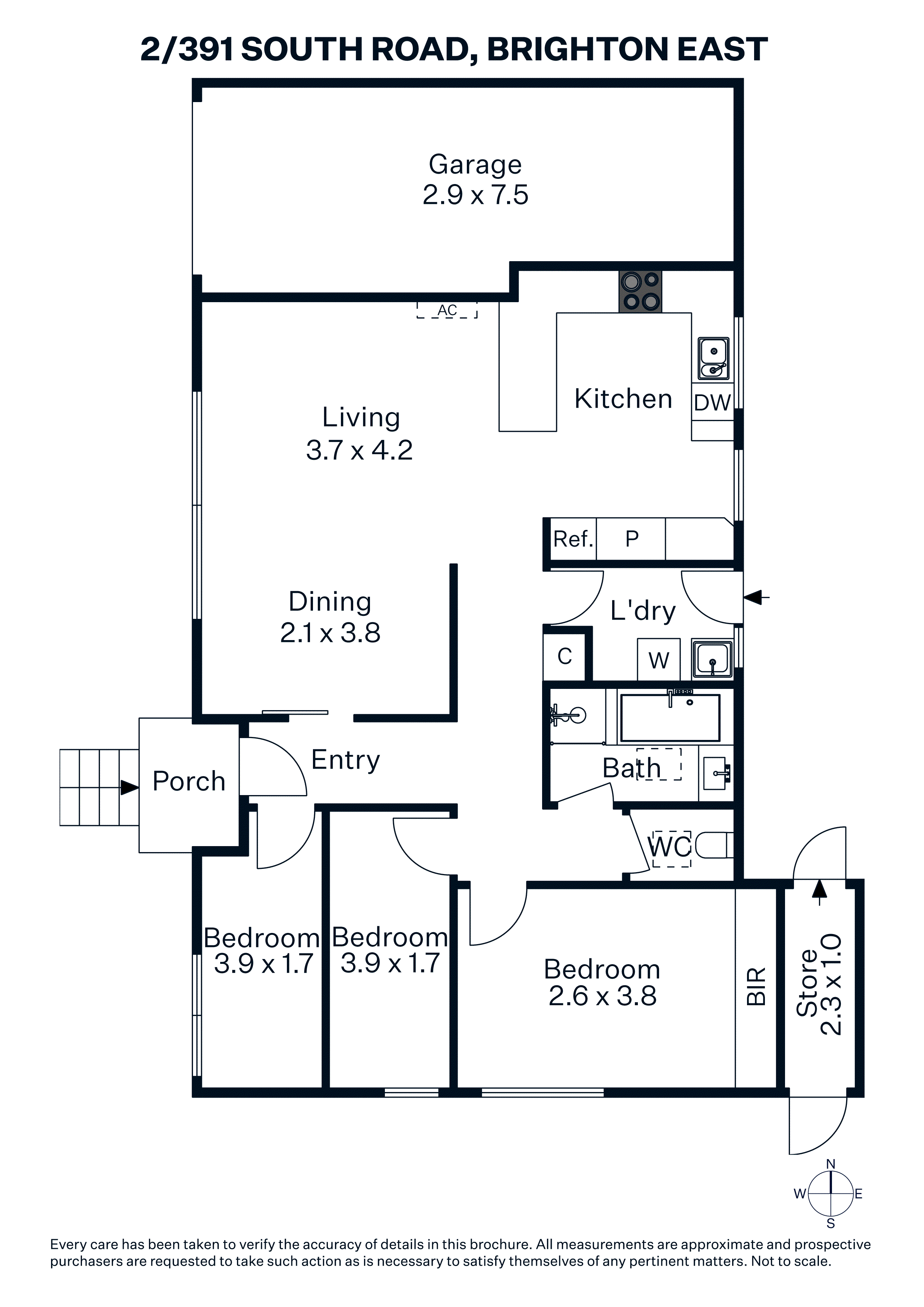 Stainless steel appliances form a timeless combination with timber cabinetry in a classical kitchen that anchors open-plan dining / living, all of which are separated from the bedrooms by a generous central hallway, in a floorplan that can readily be returned to a two bedroom design by the quick removal of a stud wall. Families will appreciate the convenience of a genuine laundry with rear courtyard access, as well as all the possibilities presented by the secure and private front garden, plus there is an independent bathtub in the bathroom, a separate wc, ducted heating and split system air conditioning.