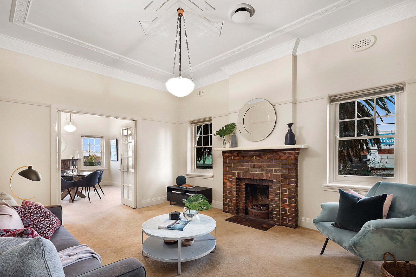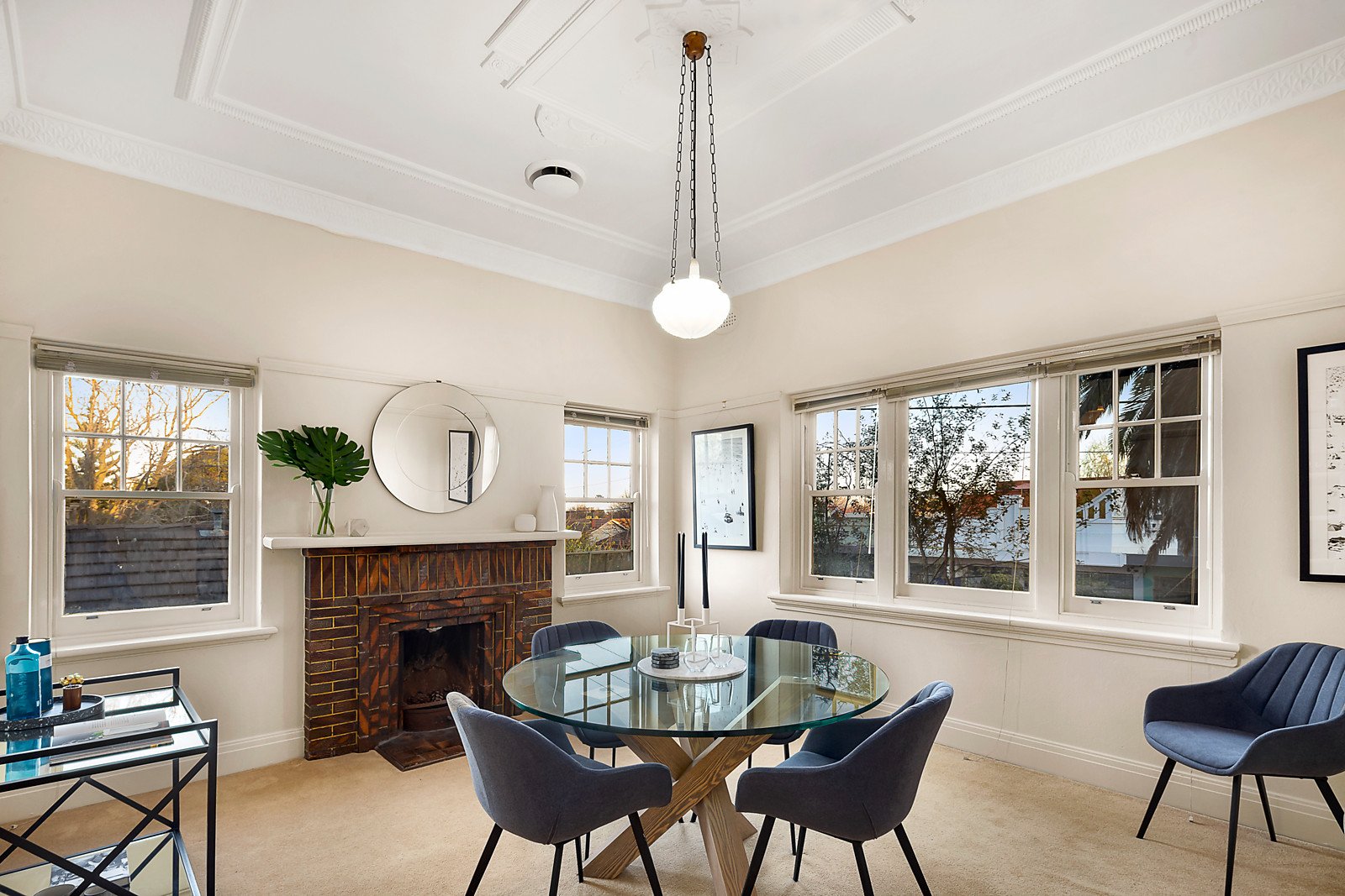 Securely accessed via its own intercom entry, the home's generous entry hall is a captivating introduction that leads through to a large lounge and semi-attached dining, all with beautiful leafy outlooks and two open fire places. Continuing the flow, a Bosch-equipped, kitchen / meals highlights original built-in bench seating, urban rooftop views, a private rear balcony and an opportunity to refurbish at your leisure. The bedrooms are genuinely large with built-in robes and enough space for desks, in this home which also features a bright bathroom, separate wc, laundry, central heating as well as a front balcony that also overlooks Central Park. Set within generous communal gardens with a lock-up garage, original stucco plaster, windows and fine detail, the home is truly first class.