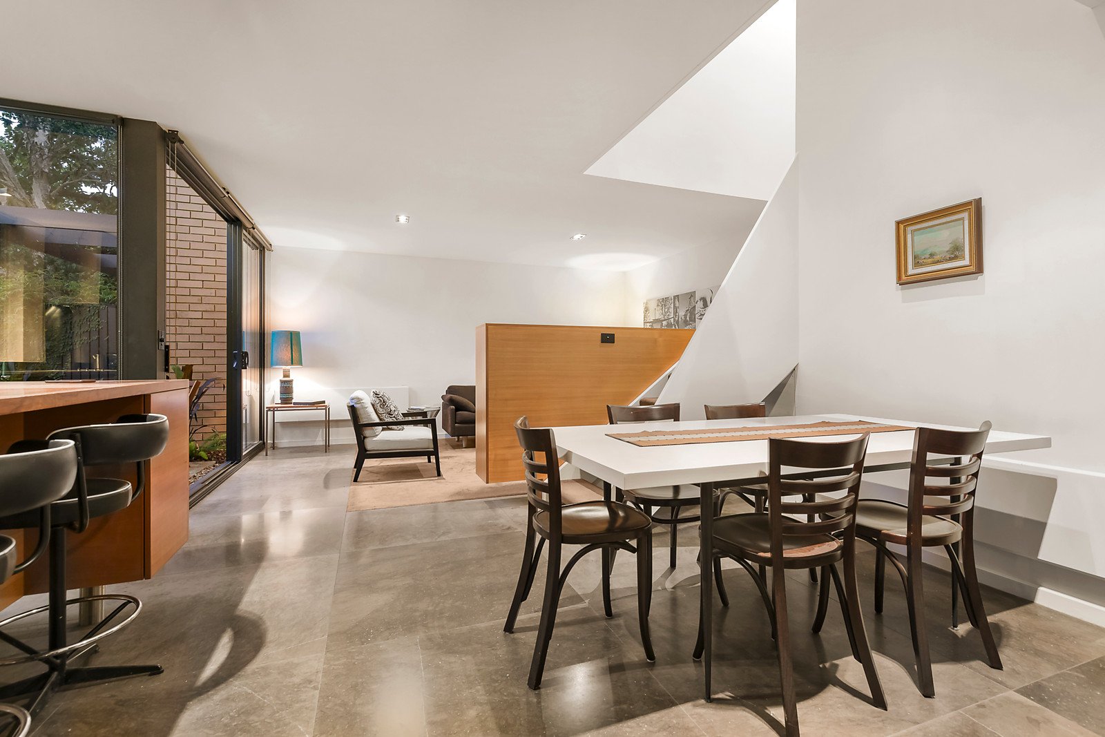A vast timber kitchen bench creates a compelling contrast to stainless steel benches and SMEG appliances in a gourmet kitchen that overlooks a generous open-plan lounge/dining. Full-width windows and glass sliding doors introduce a beautiful private courtyard and a welcome flood of natural light, while upstairs, the master bedroom features enormous triple-width built-in robes and the second bedroom enjoys the benefit of a study nook as well as more built-in robes. Meanwhile, the bathroom exudes the feel of a luxury hotel, renovated with marble surfaces, plus there is a European laundry and secure basement parking, which is a genuine privilege in this thriving location.