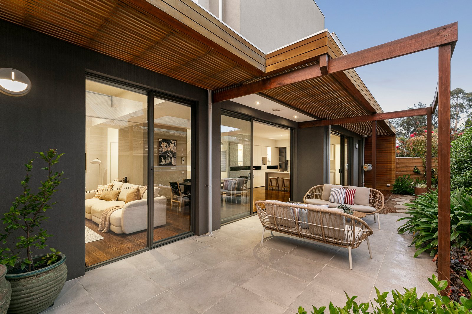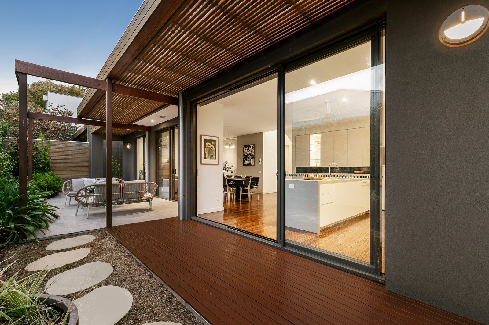 Beyond an automatic gate and video intercom entry, this impeccably presented home offers a rare sense of space and seclusion within a boutique, tightly held development. Soaring ceilings, expansive glazing, rich hardwood floors and light filled interiors create a refined backdrop to a series of beautifully zoned living spaces, all flowing effortlessly to a north-facing garden sanctuary designed for year-round indoor-outdoor entertaining.