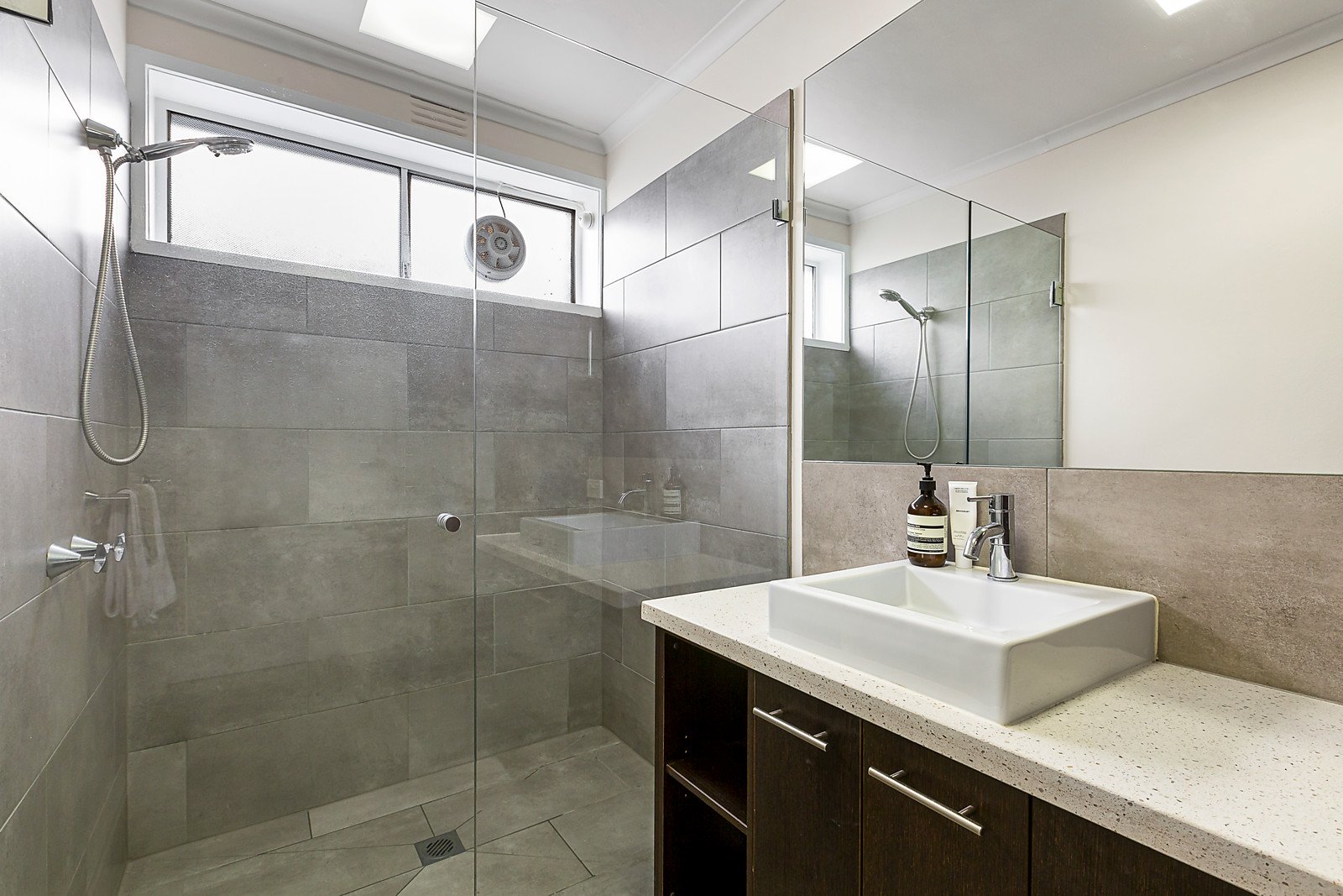 Both the kitchen / meals and the bathroom have been up-dated with a contemporary design palate that incorporates stone bench tops and timber-tone cabinetry as well as stainless steel appliances and stone-toned bathroom tiling, whilst each of the bedrooms is equipped with substantial built-in robes. A partially undercover front deck is accessed via the lounge room and is bathed in northerly sun, plus a second deck at the rear of the home is more sheltered, ensuring year-round al fresco enjoyment. Securely accessed via intercom entry, with remote access garage parking, the home also offers split system heating and cooling.