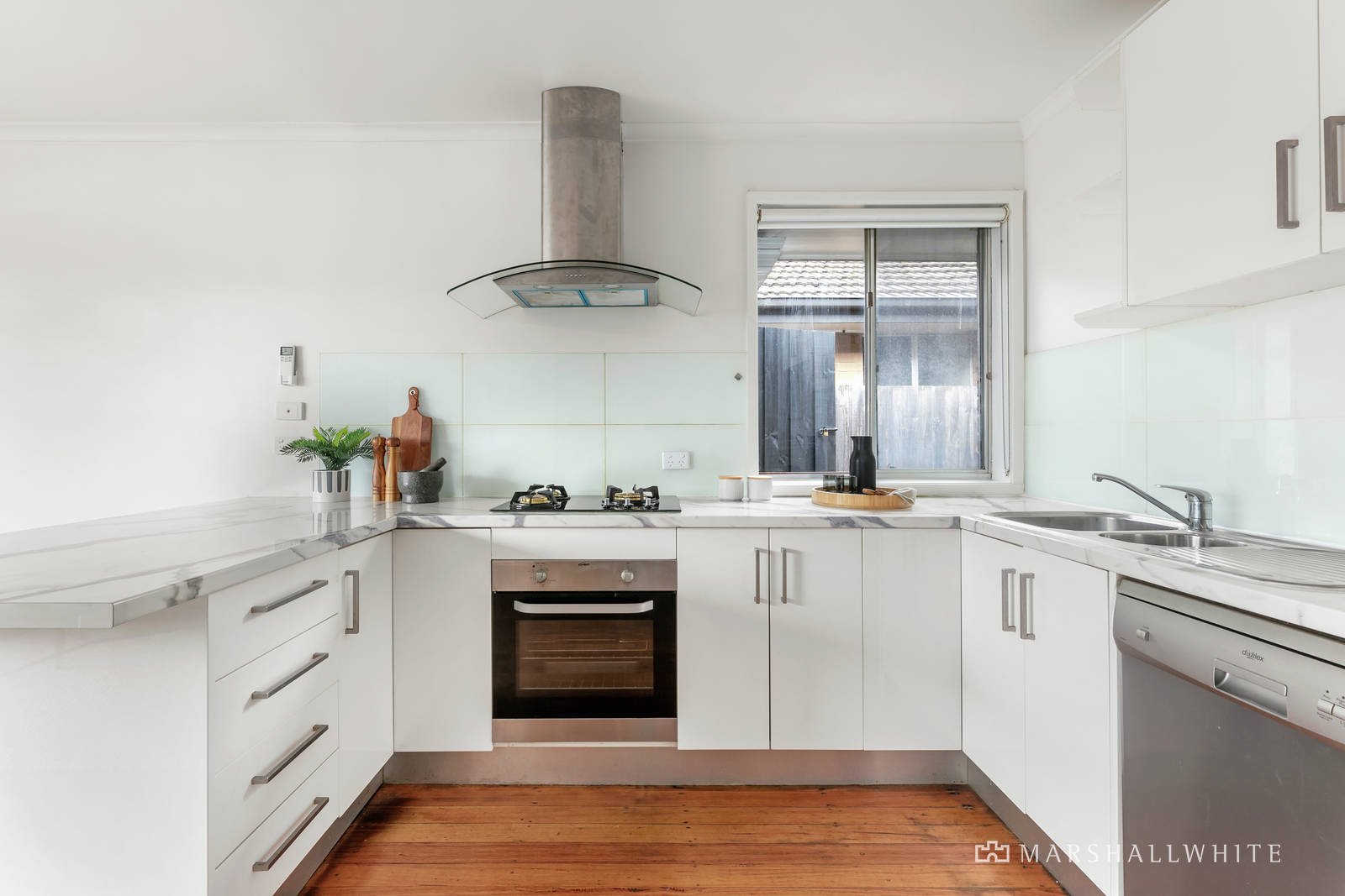 Intelligently opened-up for free-flowing spaciousness, the kitchen and open-plan dining / living area merges superior stainless steel kitchen appliances with plenty of soft close cabinetry and a clever breakfast bar, all removed from a pair of privately staged bedrooms that have been completed with abundant built-in robes. With carport parking behind lockable gates, the home is heated and cooled by a split system and further enhanced by a central bathroom with an independent bath and shower, as well as featuring a laundry, attractive hardwood flooring and a private backyard that is almost maintenance-free.