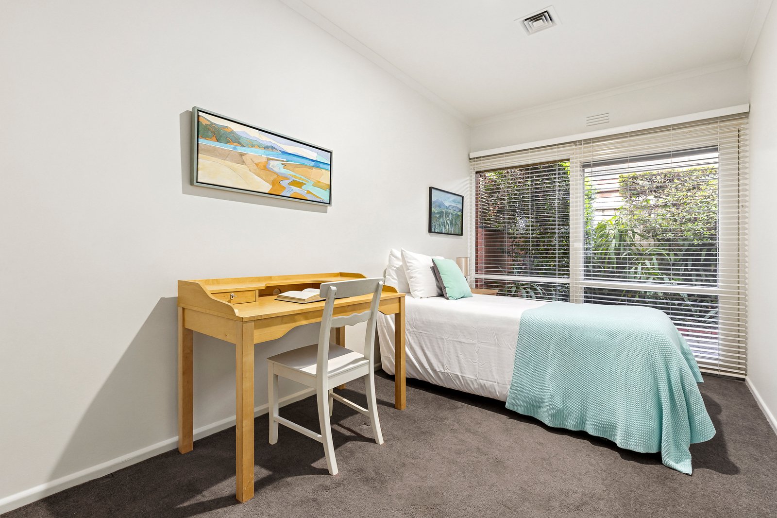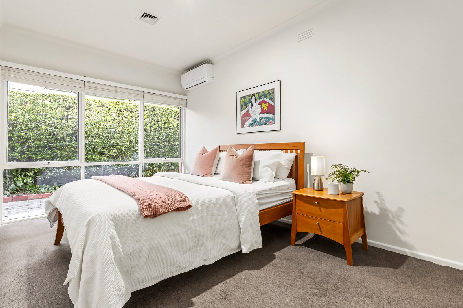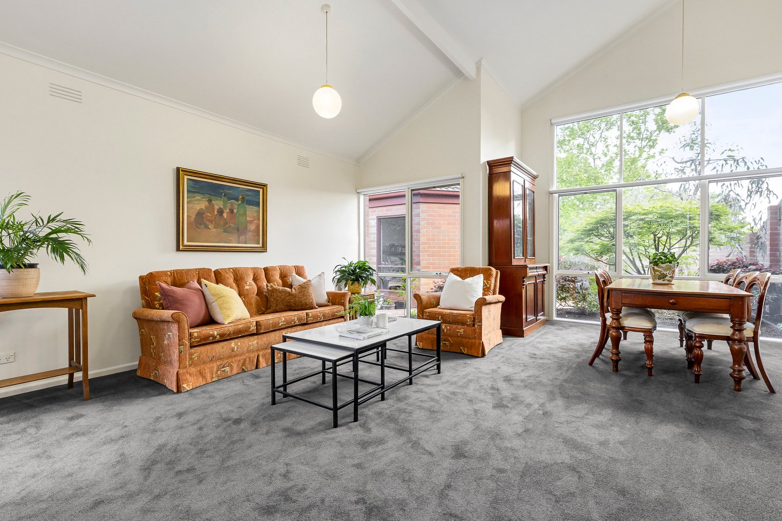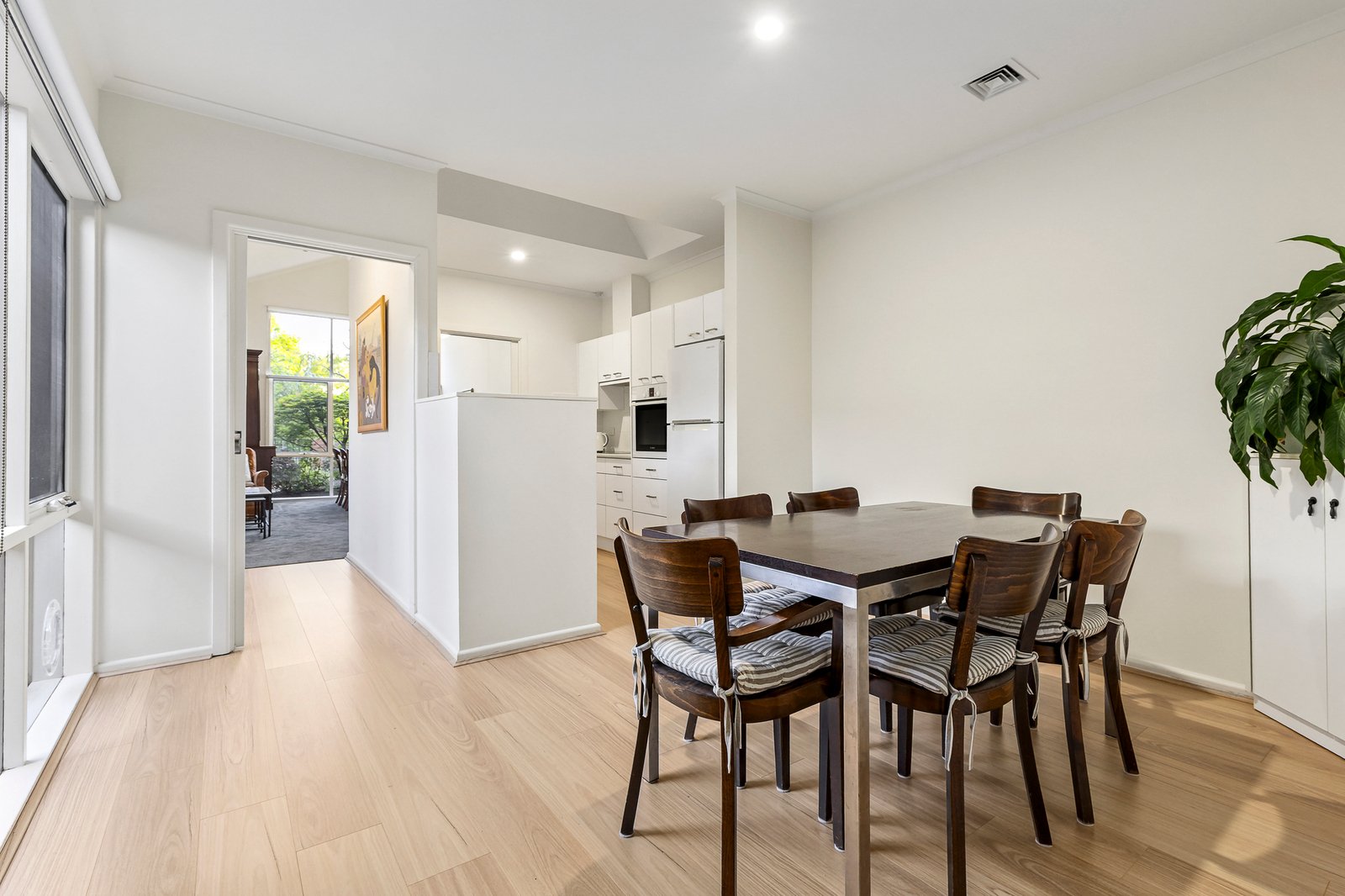 The interior features a preferred northern rear aspect and opens to a generous living and dining room with a cathedral ceiling and full height windows designed to deliver loads of natural light to the room and provide garden vistas. A stylish central kitchen equipped with Bosch and Asko appliances includes a dining area, laundry/WC to two double bedrooms with built-in robes and central bathroom. Outside features a three-sided hedge-lined courtyard with room for alfresco relaxation and dining plus a single garage. Other features include two R/C air conditioners (living and main bedroom), ducted heating, front double glazing and off-street parking for two cars.