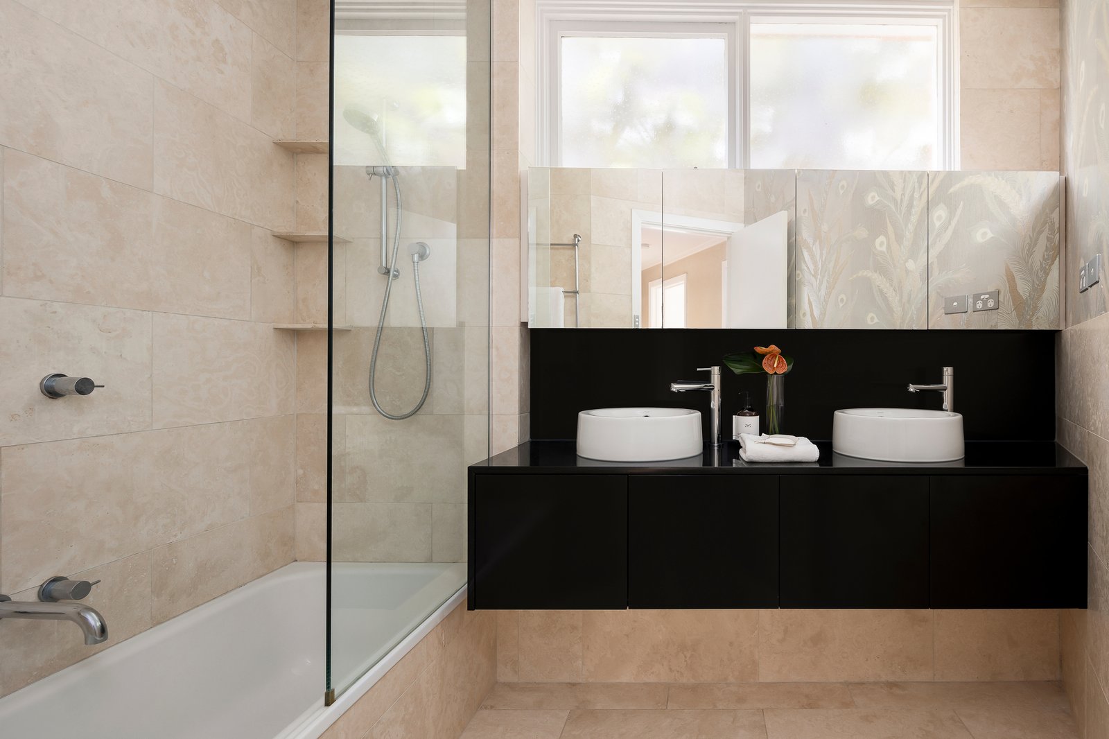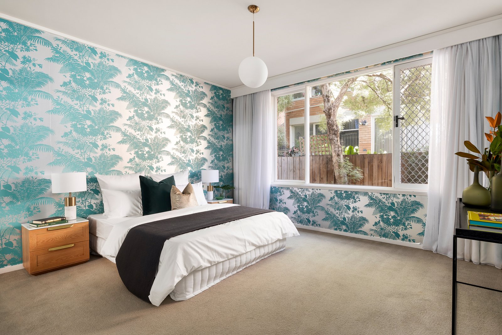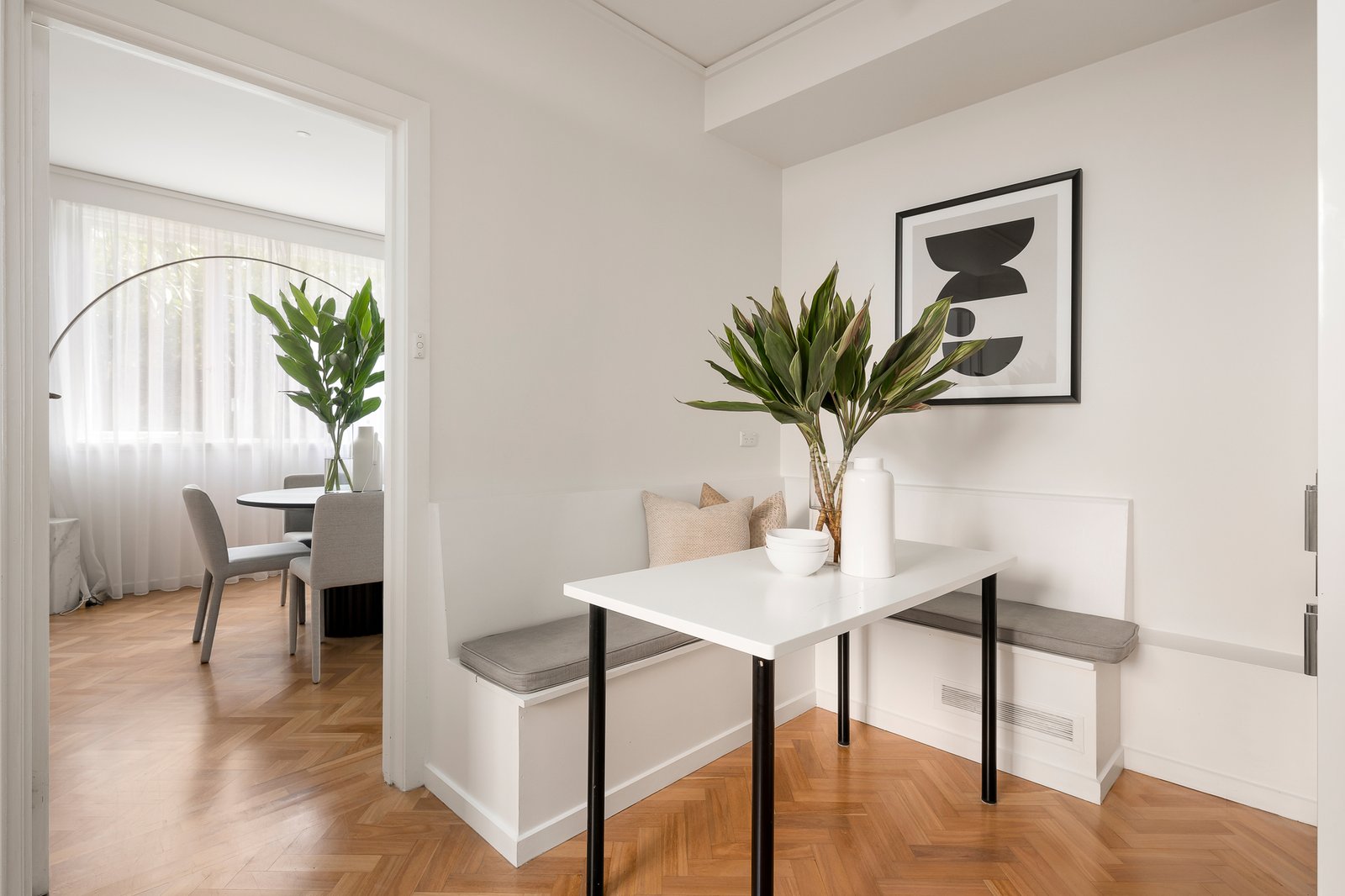 Effortlessly elegant and proudly flaunting its mid-century chic, this impressively scaled, two bedroom older-style apartment is delightfully garden-surrounded in one of Toorak’s finest streets. One of only four in the building and oriented to fill with afternoon sun, this particularly refined classical residence forms a perfect synergy with its exclusive tree-lined surrounds, while offering the rare privilege of a lock-up garage with driveway parking for a second vehicle. Inside the building’s timber panelled entrance with a sweeping circular staircase, the apartment itself reveals a broad hallway and a bold, angular design that is enhanced by appealing retro vibes. A European kitchen / meals with built-in bench seating sits separate to a dining area and a vast lounge that opens to the joy of a sunny paved terrace, while the hallway and main bedroom are each strikingly wallpapered. Further highlights include built-in robes in each bedroom, a modern stone-topped bathroom with separate shower room and a separate wc, as well as a powder room, electric log fireplace and built-in speakers in the lounge room, split system heating and air conditioning. Moments from the Yarra River and Heyington Railway Station, this is a blue-ribbon position near St Catherine's and St Kevin's as well as trams along Toorak Road, Toorak Village and all the action of the Toorak Road and Chapel Street precincts.