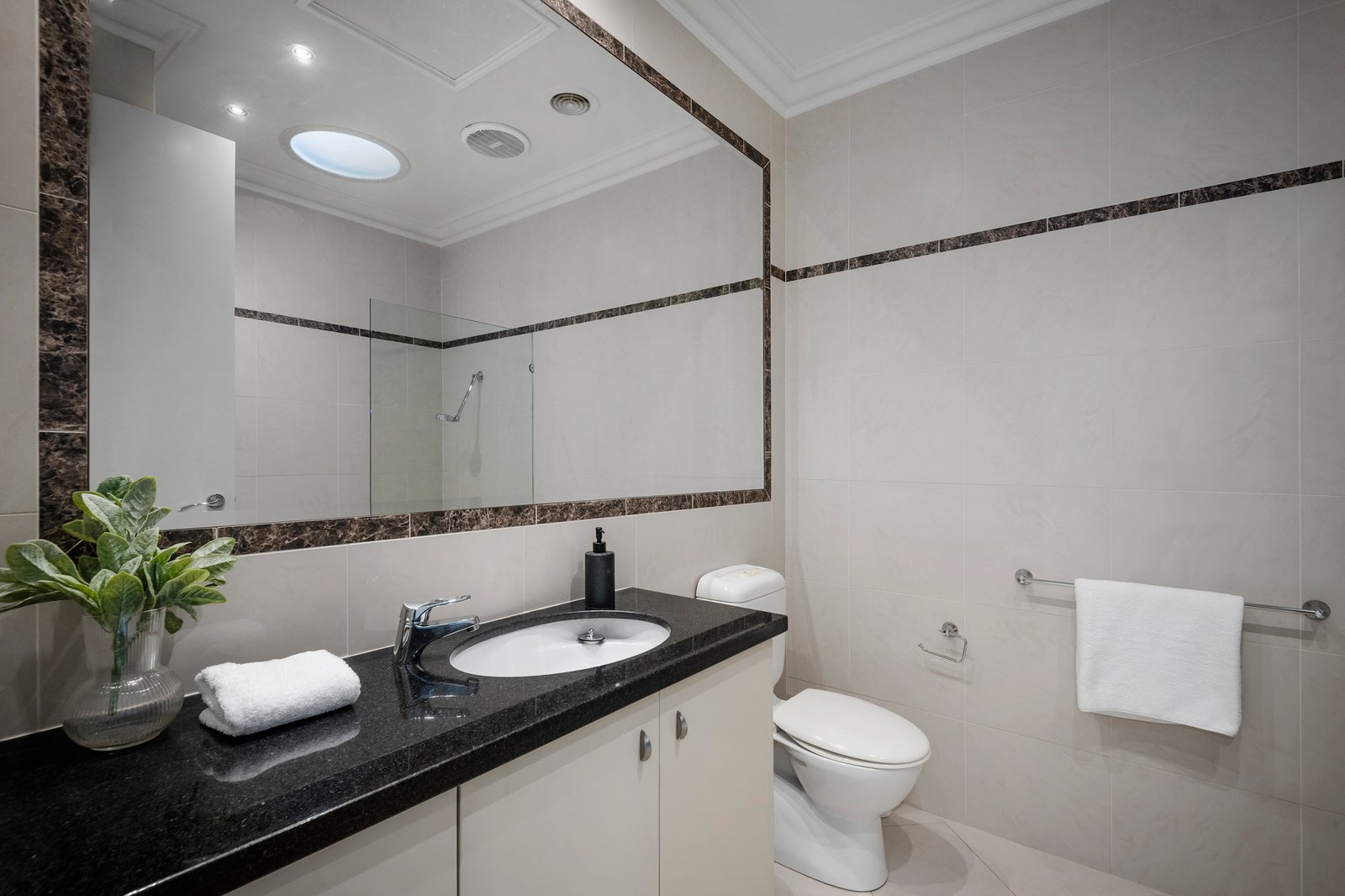 Well-suited to a range of lifestyles and stages, a three-bedroom, three-bathroom floorplan presents the ultimate contemporary versatility, complemented by a sky-lit study. The open plan living zone is flanked by a serene water feature and pond, with a gas fireplace creating ambience and warmth, while plenty of space for dining and relaxing is achieved by its generous dimensions. Large windows, garden views and easy separation between zones create a sense of space. Two independent front entrances present the opportunity to create an annex apartment, well suited to multi-generational living and growing families.