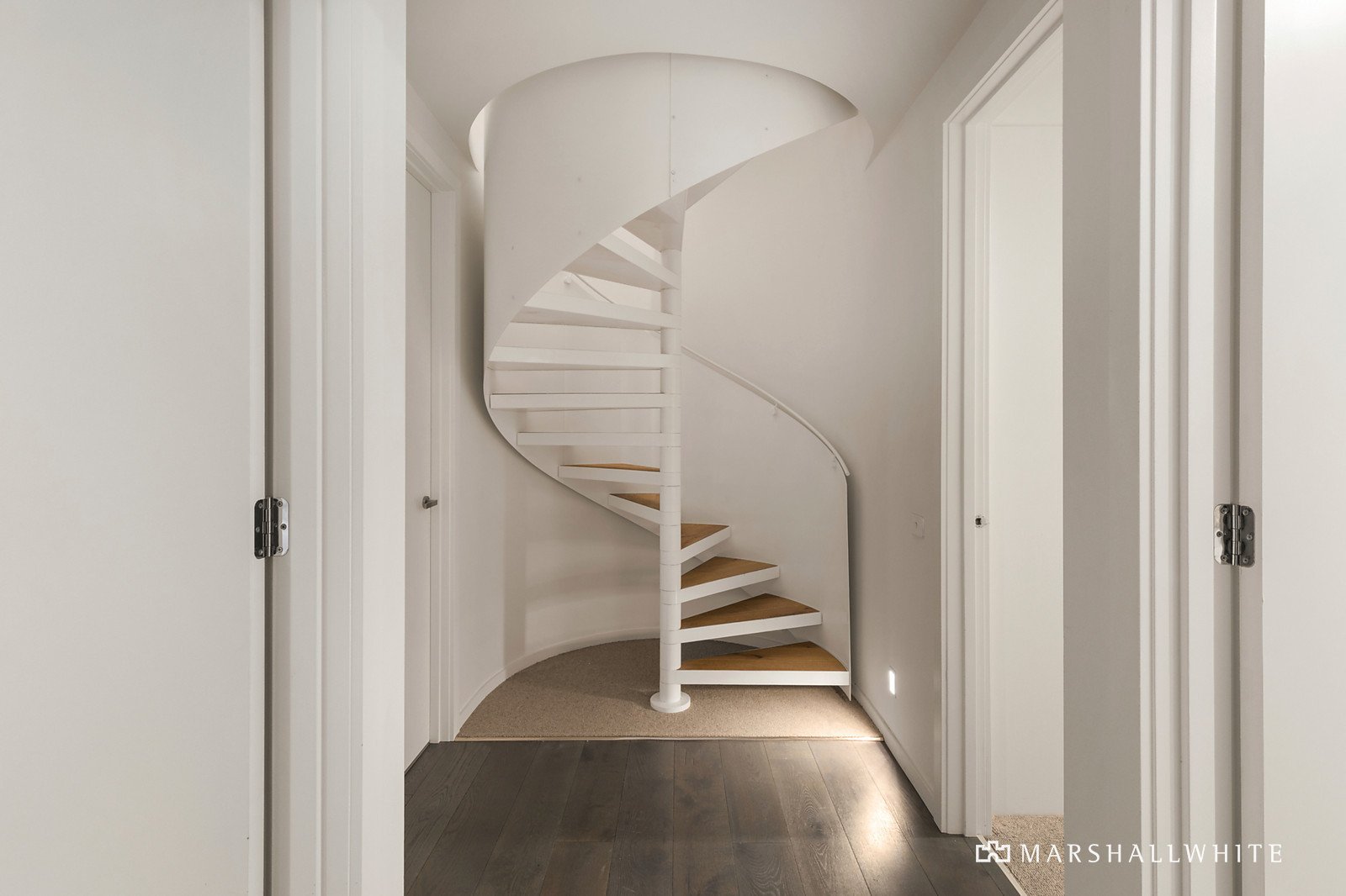 A striking contemporary exterior introduces this compelling dual-level townhouse-style apartment that exudes contemporary luxury. Bathed in natural light, curvilinear accents and clean lines provide a sleek and sophisticated aesthetic.