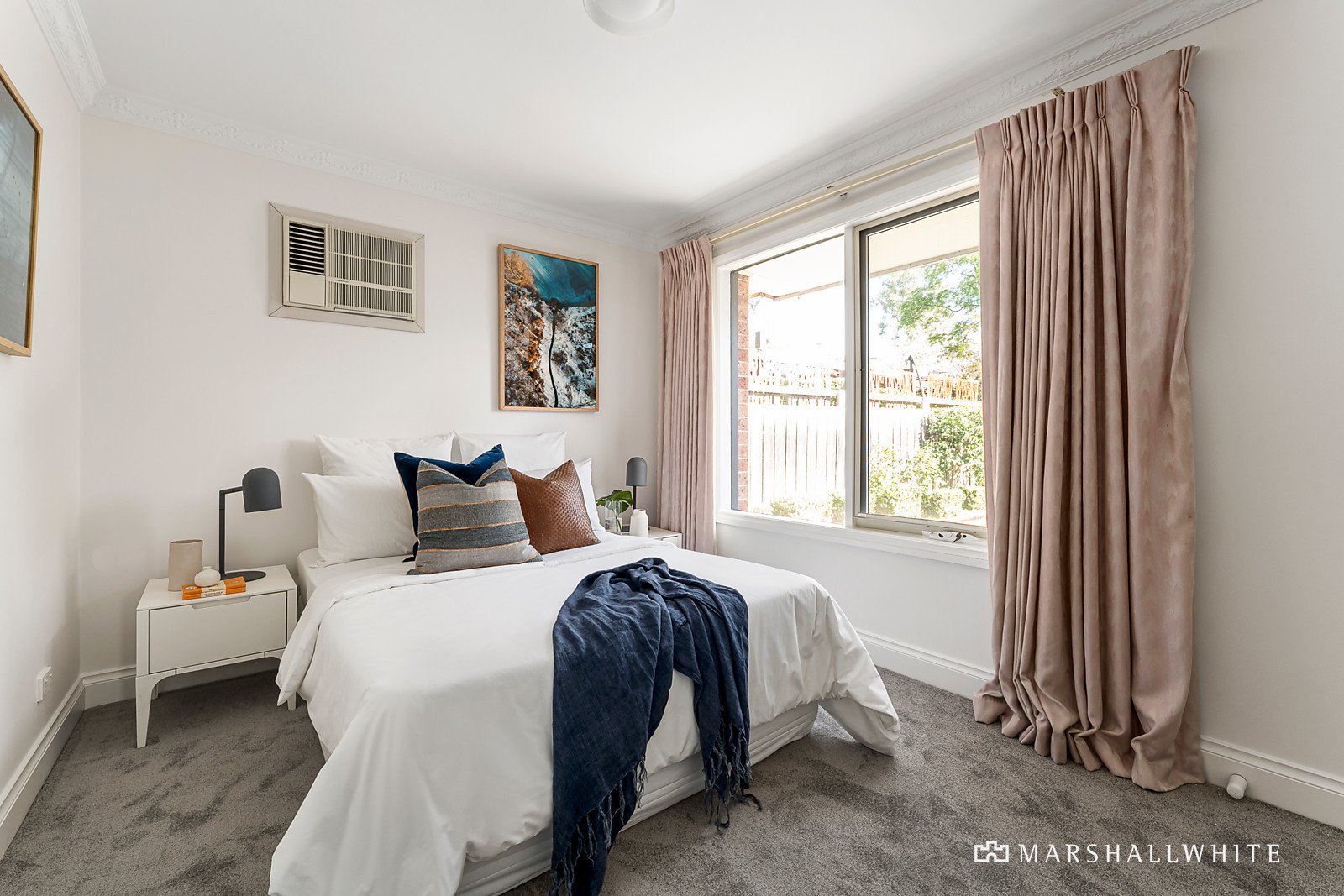 The stylish, light and bright interior is ready for immediate occupation and to enjoy the lifestyle in a leafy Balwyn surrounds. Featuring a fresh white decor with contrasting pale grey carpets, the spacious, north-facing living room and stylish kitchen/dining equipped with all-white appliances and adjacent separate laundry all opening to a deck and well-established wrap-around courtyard garden with room for outdoor relaxation. Complemented by two good-sized bedrooms with built-in robes with a dual access bathroom and separate WC. Other attributes include large windows delivering loads of natural light to the home, ducted heating and vacuum, air conditioner (kitchen/dining) and a large single remote garage.