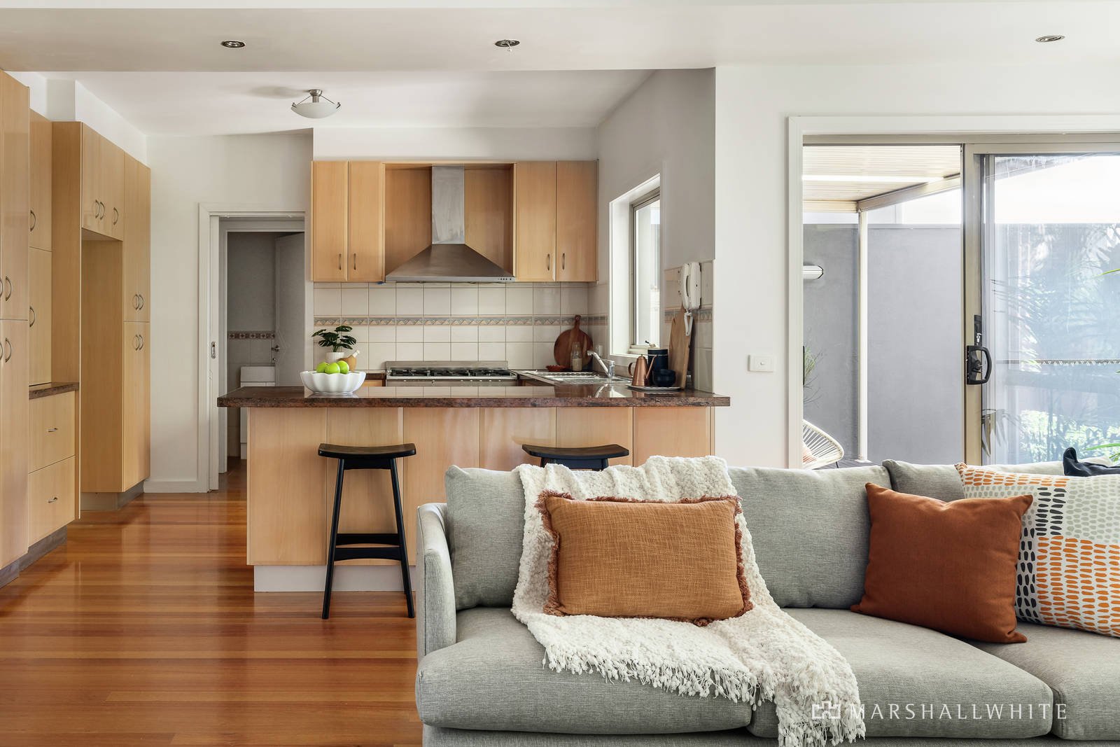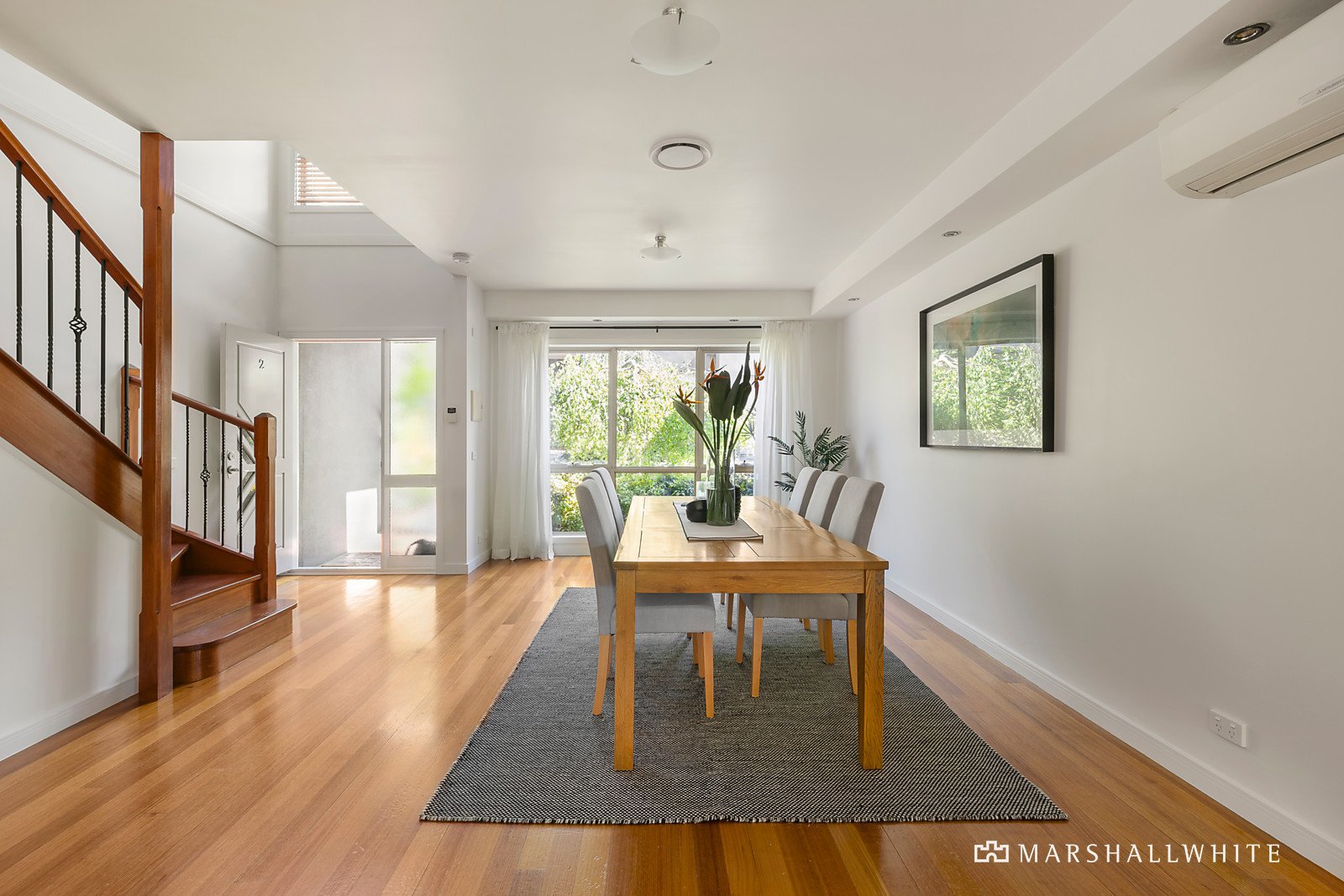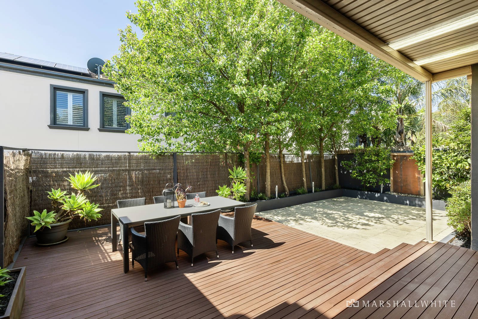 Exemplifying all that is desirable in a low maintenance town residence this stylish home features a striking grey rendered façade preceding a spacious, light filled interior over two levels capitalising on a preferred north-facing rear aspect from floor-to-ceiling and large picture windows. Further enhanced by superb polished hardwood floors and an expansive dining and living room incorporating a large timber kitchen equipped with granite bench tops and premium stainless steel appliances with adjoining powder room and laundry. All flowing to a partially covered, split-level deck and leafy courtyard garden; providing ample space for indoor/outdoor dining and entertaining in a sundrenched setting. The second level comprising three bedrooms, two with built-in robes and the generous main has a balcony, WIR and ensuite and a family bathroom. Other features include intercom entry, alarm, R/C air conditioners (living & bedrooms), ducted vacuum and a remote double garage/storage with secure internal access.