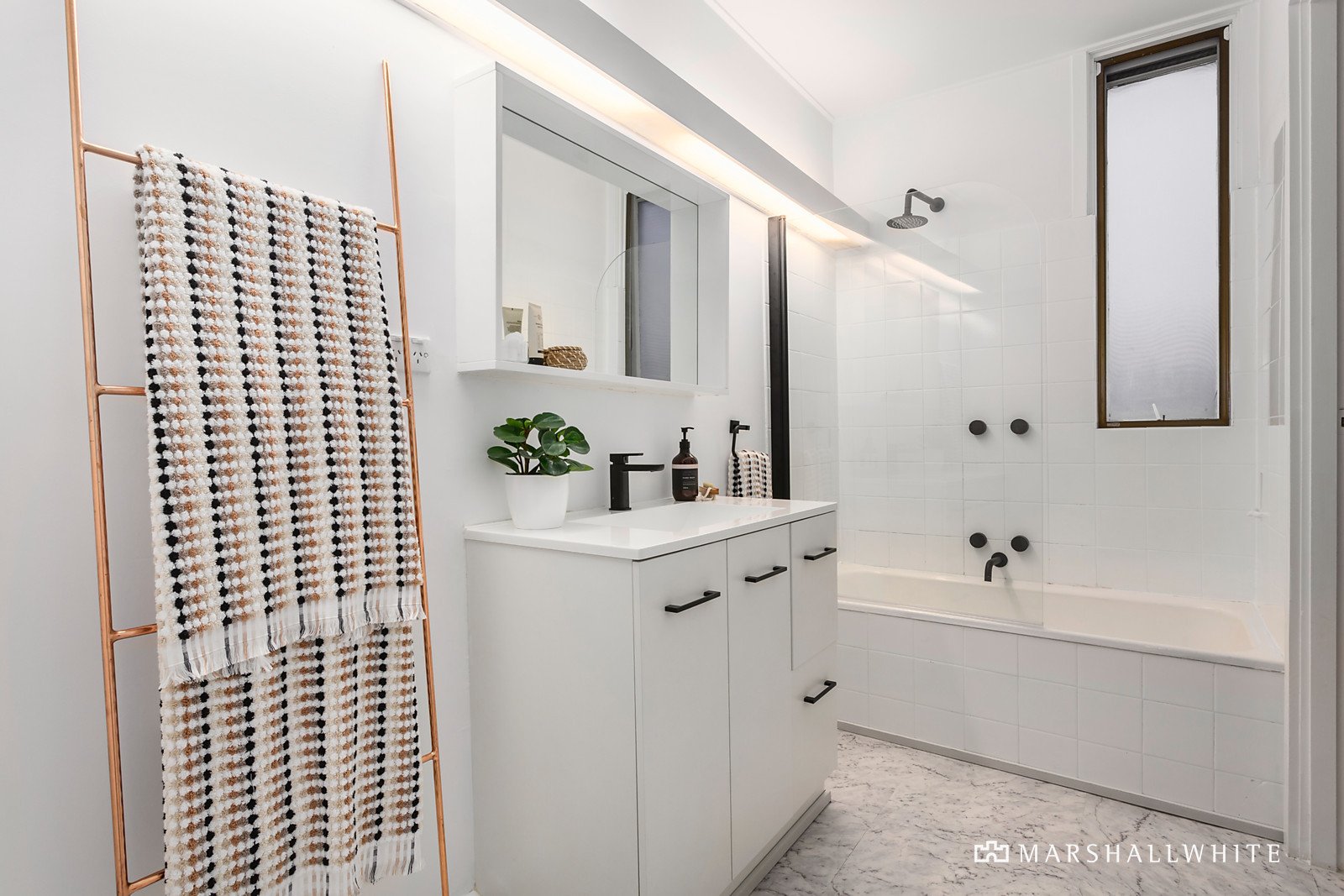 Timelessly elegant with stone benches, stainless steel appliances and an abundance of soft close cabinetry, the kitchen is both attractive and functional as it overlooks generous dining / living all with a relaxed flow outdoors to a partially paved courtyard oasis. Upstairs and sharing convenient adjacency to a sparkling central bathroom, the bedrooms are each impressively sized with built-in robe storage and a sheltered balcony off the main bedroom, plus there is coveted carport parking at the front of the building.