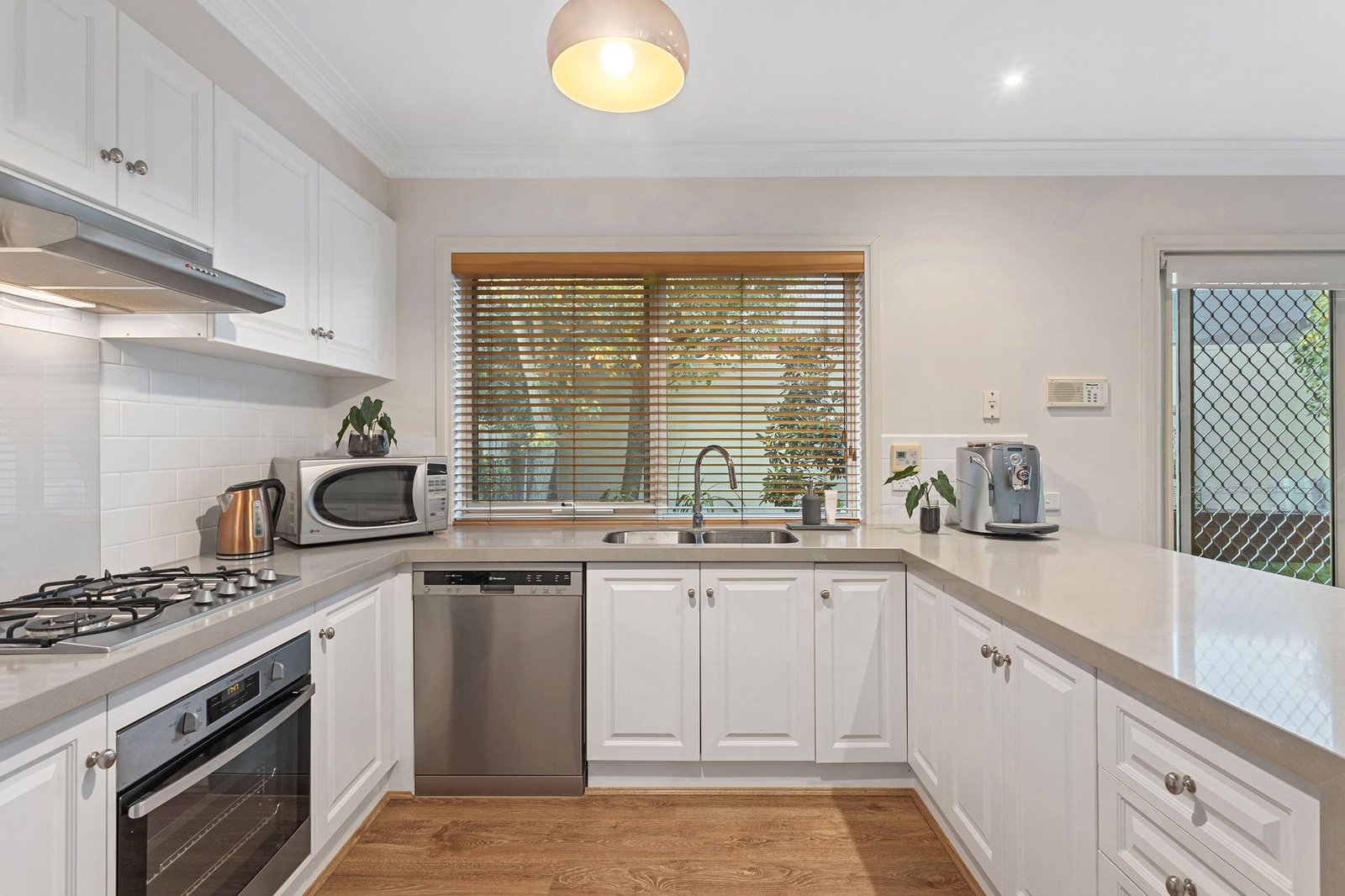 Rich in modern Hamptons’ style aesthetics, the double-storey home’s newly updated kitchen features stone benchtops, a breakfast bar with waterfall edge, and Westinghouse appliances including gas cooktop, oven and dishwasher. Northerly facing, the light-filled open-plan living/dining area connects to the private rear courtyard garden with lushly planted beds and borders, and an easy-care mod-grass lawn area. Upstairs are the three bedrooms including one with an access door to the westerly-facing balcony which offers wonderful sunset vistas, while the main bedroom has a walk-in robe and luxe shower ensuite. Also beautifully updated, is the main bathroom, a free-standing tub, dual-head walk-in shower and stone/timber vanity. Freshly painted and newly carpeted, with hybrid timber flooring in the kitchen/meals area, additional features include split system heating/cooling, ducted vacuum, WiFi video security, and the double remote-operated garage has access to a garden/storage shed plus there is an internal access door to the stylish laundry/mud room.