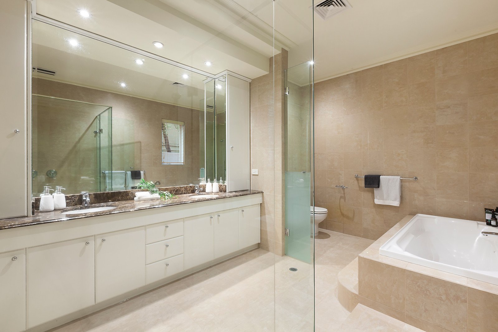The impressive proportions are immediately apparent in the broad entrance gallery, which flows through to a palatial formal sitting and dining room and an expansive home office or retreat all opening to a large north-facing private terrace surrounded by greenery. Generously proportioned open plan casual living and dining areas and a gourmet granite kitchen appointed with Miele appliances open to west-facing private terraces. The glorious main bedroom with lavish ensuite and walk in robe and a second double bedroom with ensuite and built in robe also both open to the garden.