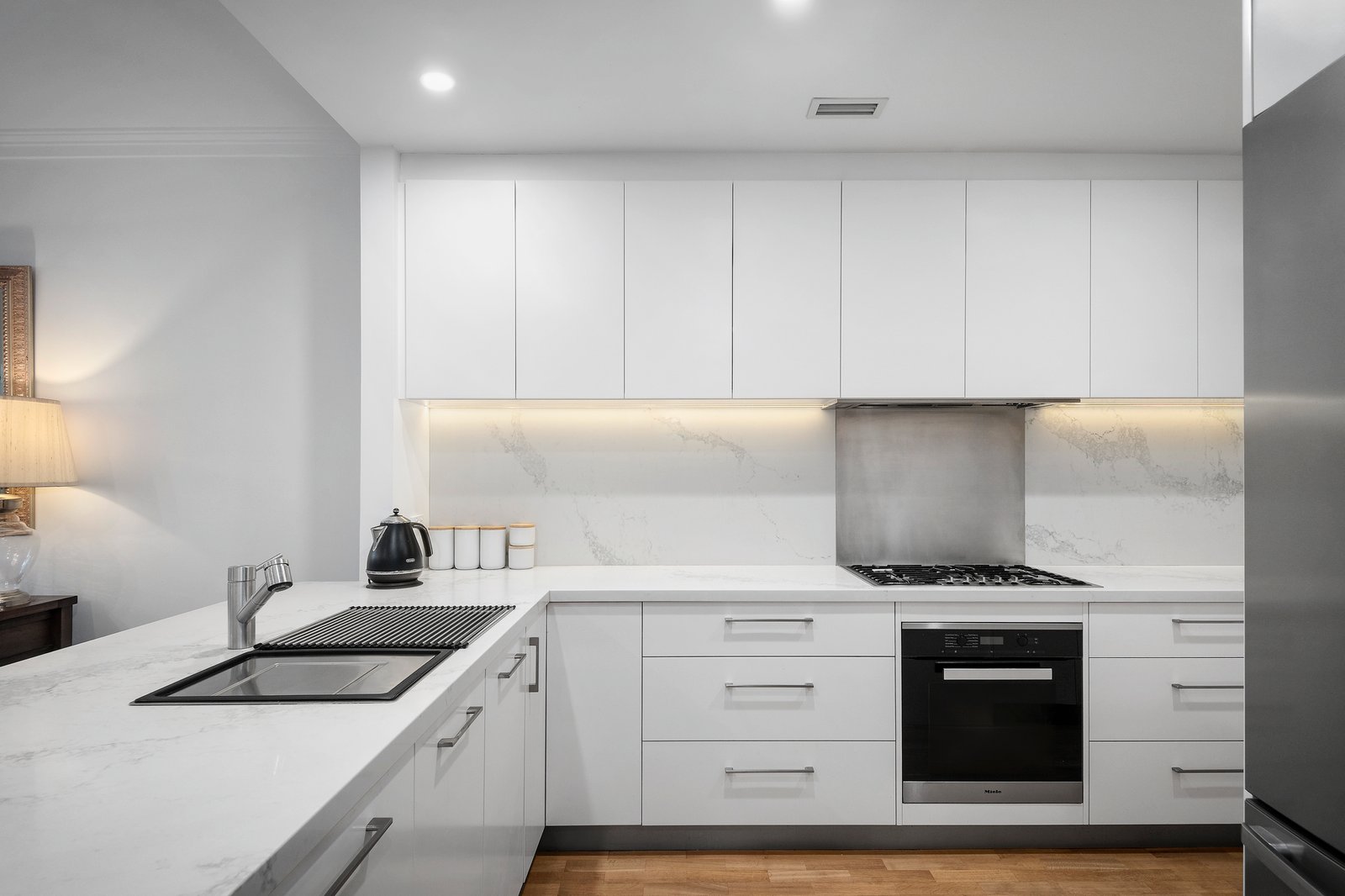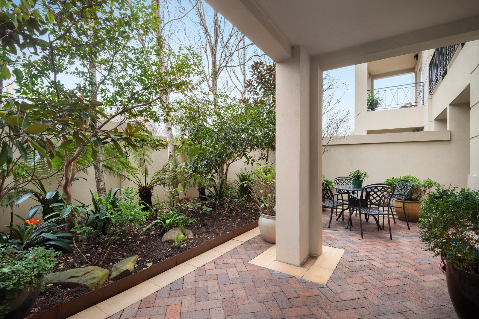 Thoughtfully updated with a discerning eye for quality, the home features a recently renovated stone topped kitchen appointed with Miele appliances opens up to a spacious dining/living area where French doors lead seamlessly to a paved alfresco courtyard in front of a delightful garden backed by high trees in this stylish collection of only eleven largely owner-occupied residences.