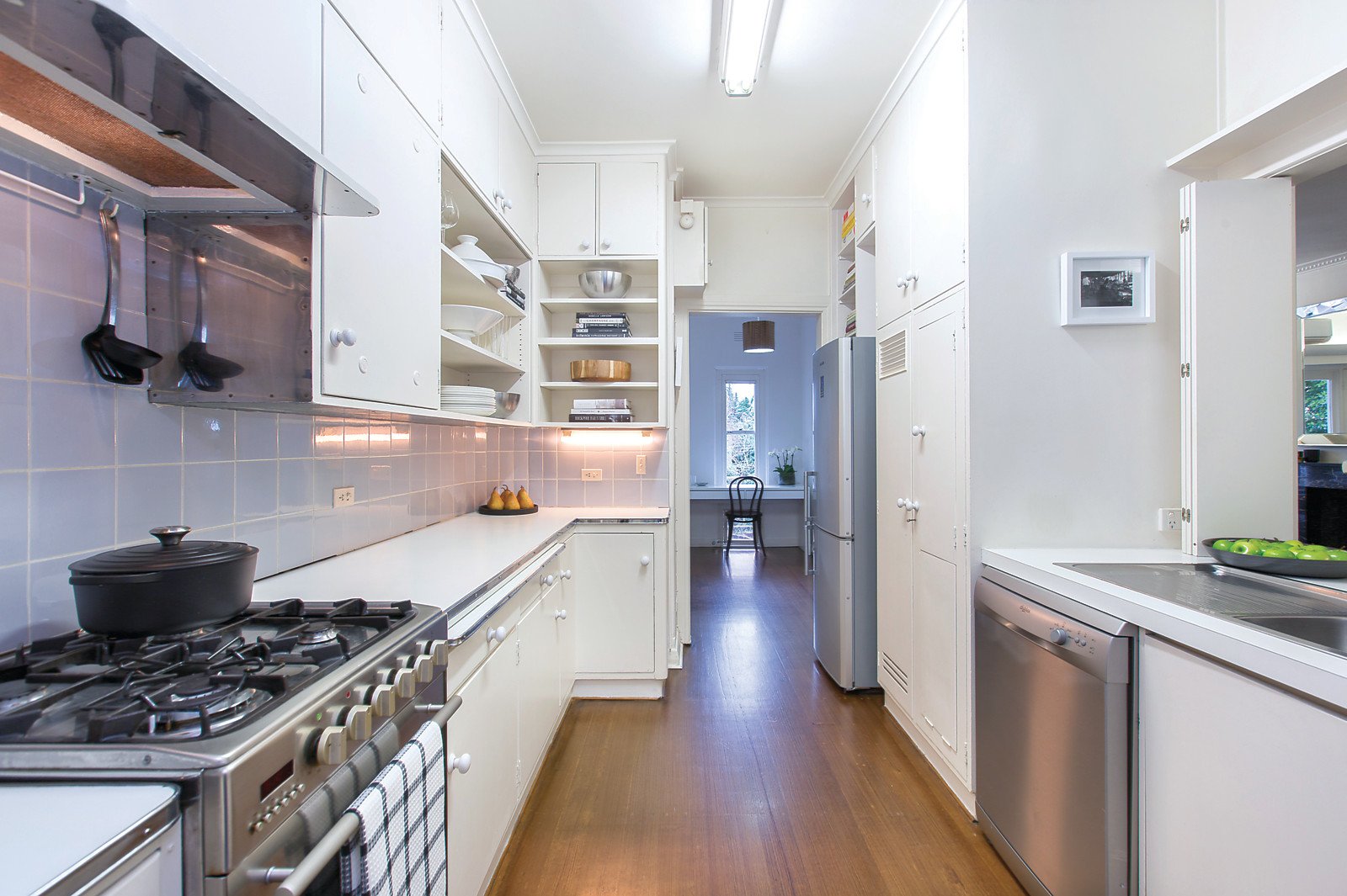 Presented perfectly, the well-preserved kitchen connects through a servery to a bright open-plan dining/lounge which itself is resplendent with a marble fire place, sunny balcony and delightful north-facing garden outlook. Enhanced by gorgeous polished timber floors throughout, the home also features large bedrooms with robes, a useful alcove study nook and a modern bathroom that sits tastefully alongside the traditional. Importantly, the home also features rear parking, a lovely garden allotment and secure intercom entry.