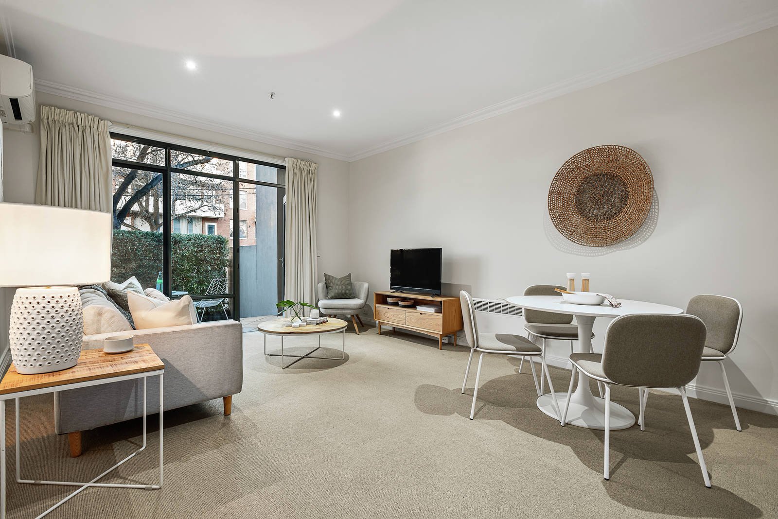 Set within the enormously popular and tightly-held 'Denbigh Terrace' building, just metres from both High St and Armadale Railway Station, this highly refined and elegant, two bedroom apartment promises a lifestyle enriched by a vibrant cafe culture and the easiest of city access. As it evokes a regal sense of grandeur that is perfectly consistent with its premium Armadale position, the home combines wonderful security with an alluring indoor-outdoor connection. Forming a visually cohesive and classically stylish combination, granite bench tops and stainless steel Blanco appliances distinguish an open-plan kitchen / meals / living that flows through double doors to a broad and paved balcony, which itself is shielded by a verdant hedged garden. Each of the bedrooms overlook the balcony and each has built-in robes, while the master bedroom enjoys the luxury of private outdoor access. Fully secure video entry and two basement parking spaces with storage deliver convenience and peace-of-mind in this vibrant location, whilst the home also features split system heating / cooling, a European laundry and elevator access from the basement. Exclusively situated in one of Armadale's favourite, wide and tree-lined streets, this beautifully presented home allows you to relish the opportunity to walk to an impressive selection of fine cafes and restaurants, whilst Armadale Railway Station promises easy city commuting and High St trams are just a few metres away as well.