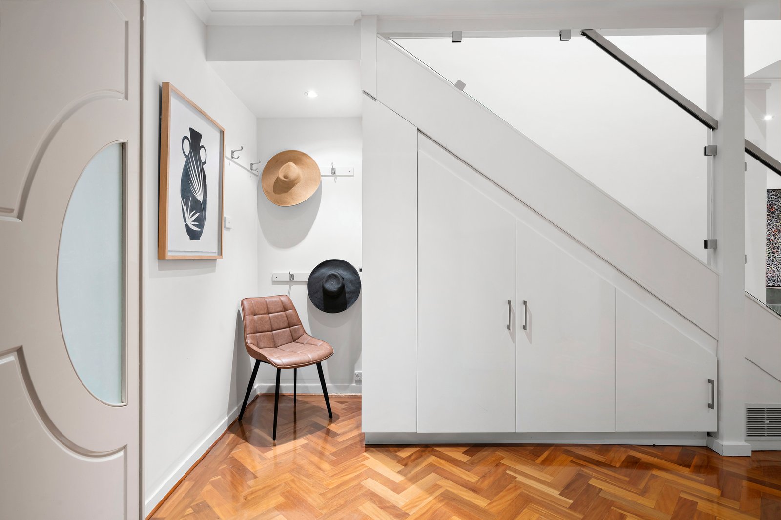 Offering an adaptive and flexible layout over two levels, the solidly built rendered-brick home inspires effortless family liveability with a custom fit-out providing ample storage and intuitive, functional spaces. With video intercom entry, double front doors open to reveal timber parquetry flooring that flows through to the abundantly glazed open-plan living areas including a conservatory-like dining space. Timber-framed glass sliding doors connect to the native-inspired landscape-designed gardens featuring a dry riverbed, a feature grass tree, and an expansive, elevated alfresco dining deck, positioned to enjoy northerly sun. Perfect for entertaining, the gourmet stone kitchen is equipped with Blanco stainless steel appliances including a gas cooktop, oven, and dishwasher, and looks out to a sunny lawn area in the fully fenced pet-friendly rear garden.