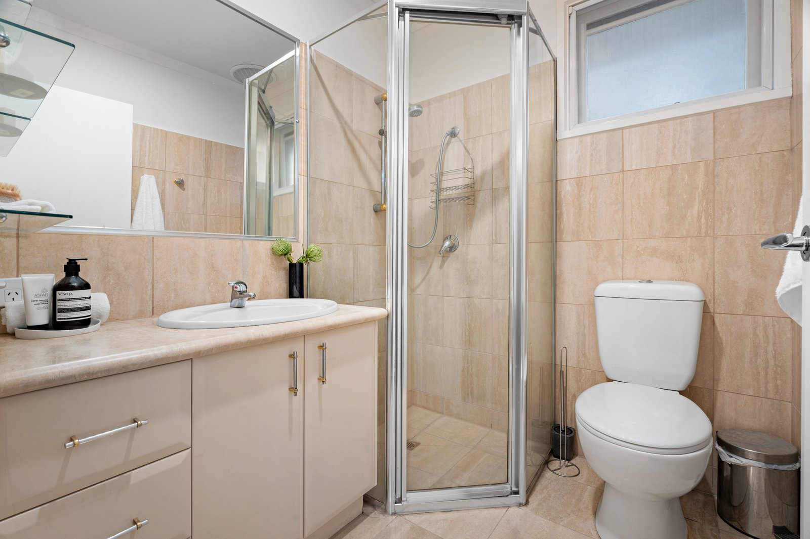 There are four bedrooms upstairs including the spacious main with a walk-in robe and travertine ensuite, while the downstairs rumpus room could also be used as a fifth bedroom, or home cinema. The main bathroom, also splendidly tiled in travertine, has a two-person spa bath and walk-in shower, and there are powder rooms on both levels. Includes ducted & split system heating/cooling, laundry with external access, fitted study plus study nook, mud-room nook, built-in wine storage, under-stair storage, private electric gates, and a large remote-controlled double garage.