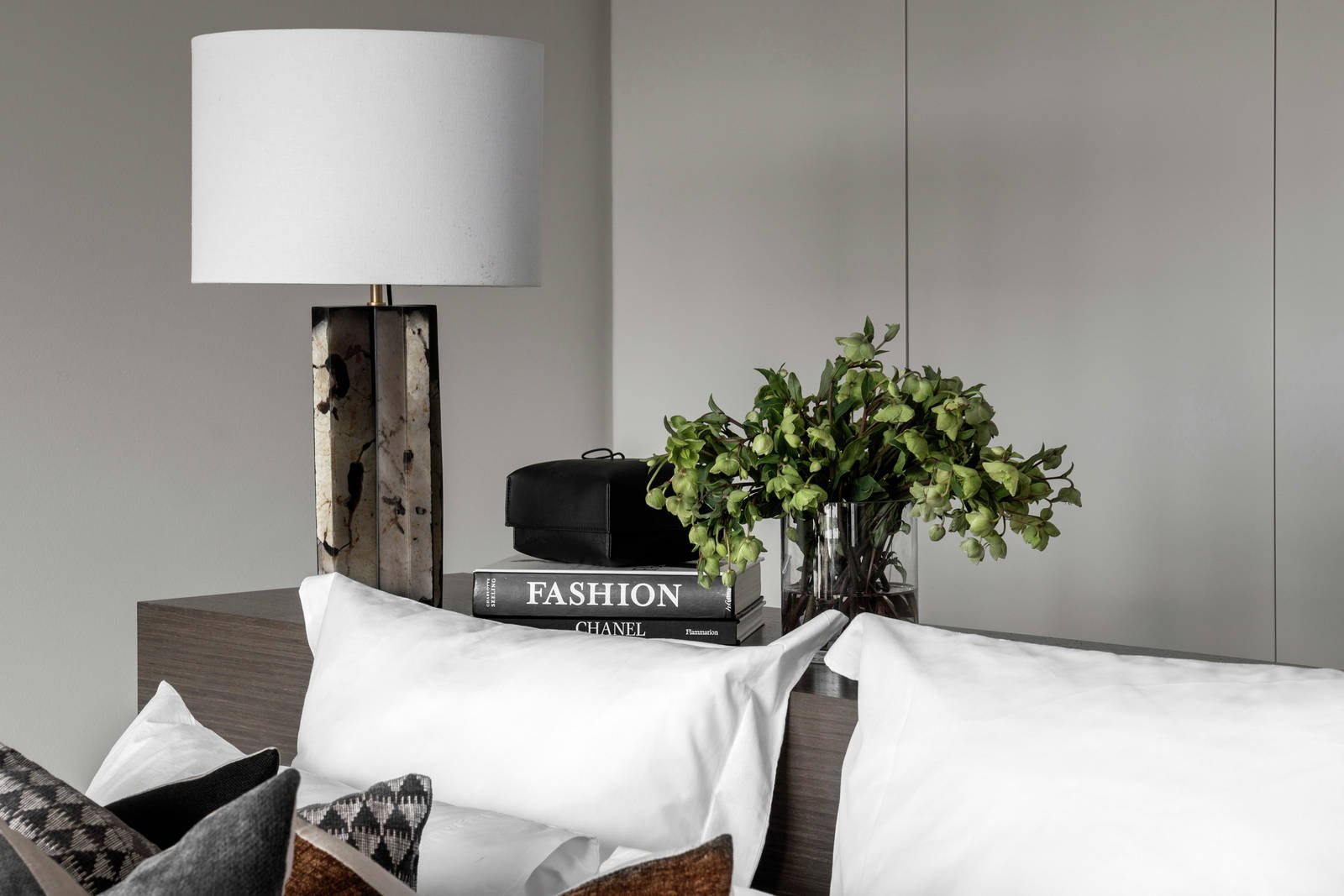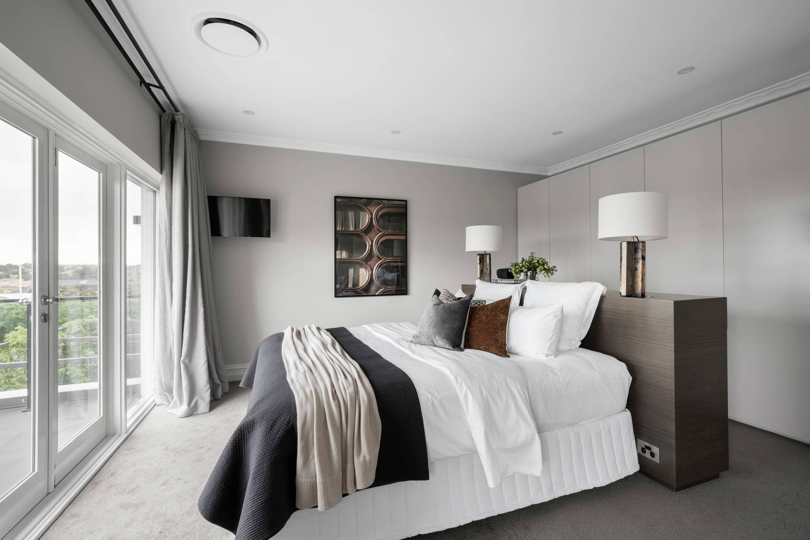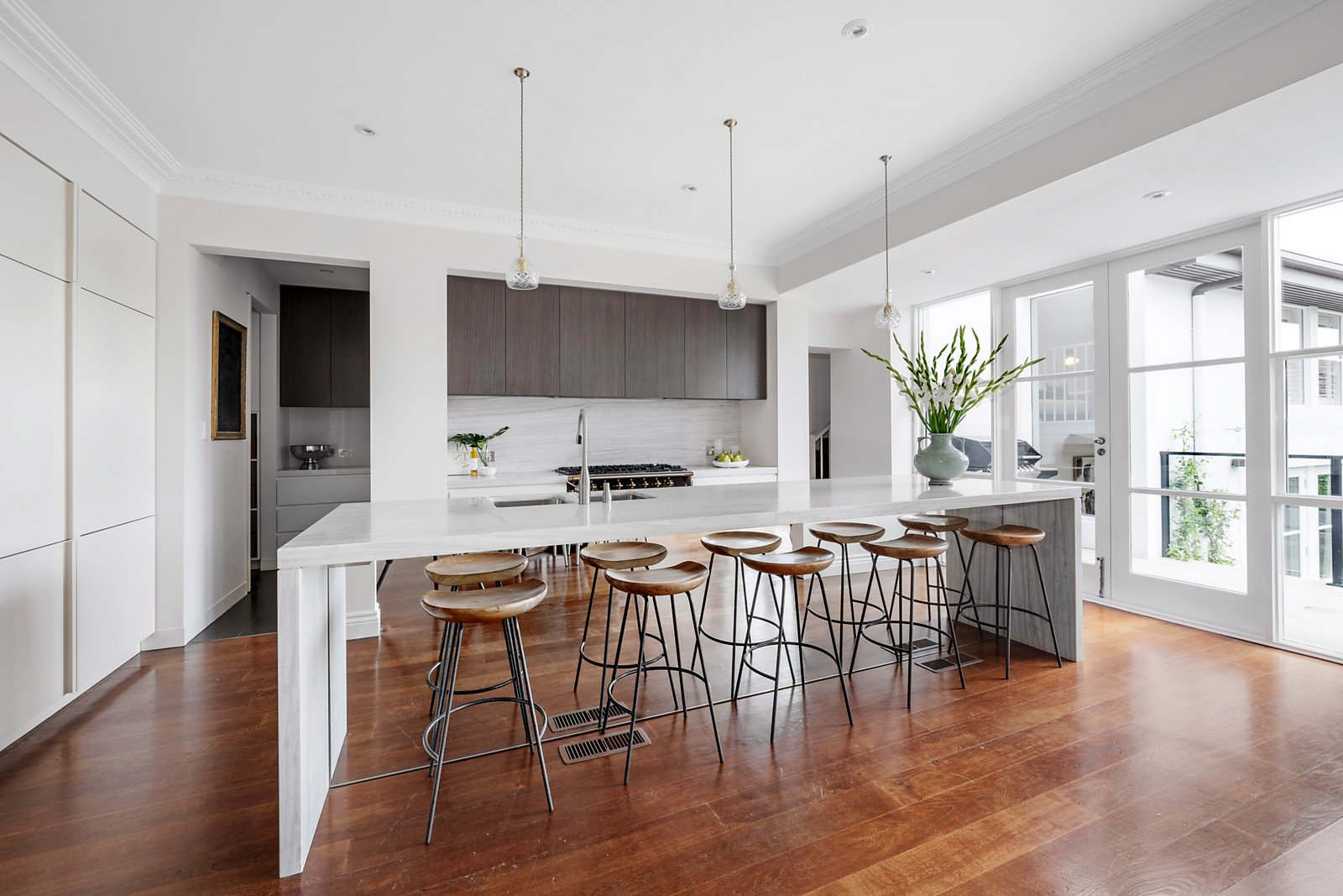 Bespoke features including stunning light fittings, timber floors and a marble gas fireplace add an element of grandeur to the elegant living and dining areas. The voluminous scale of the family living and dining room is accentuated by full height doors flowing seamlessly to an expansive northern terrace, heated swimming pool and glorious private landscaped gardens. A masterpiece in culinary design, the sublime kitchen is appointed with marble benches, European appliances and butler's pantry. A serene separate sitting area is perfect for casual living.
