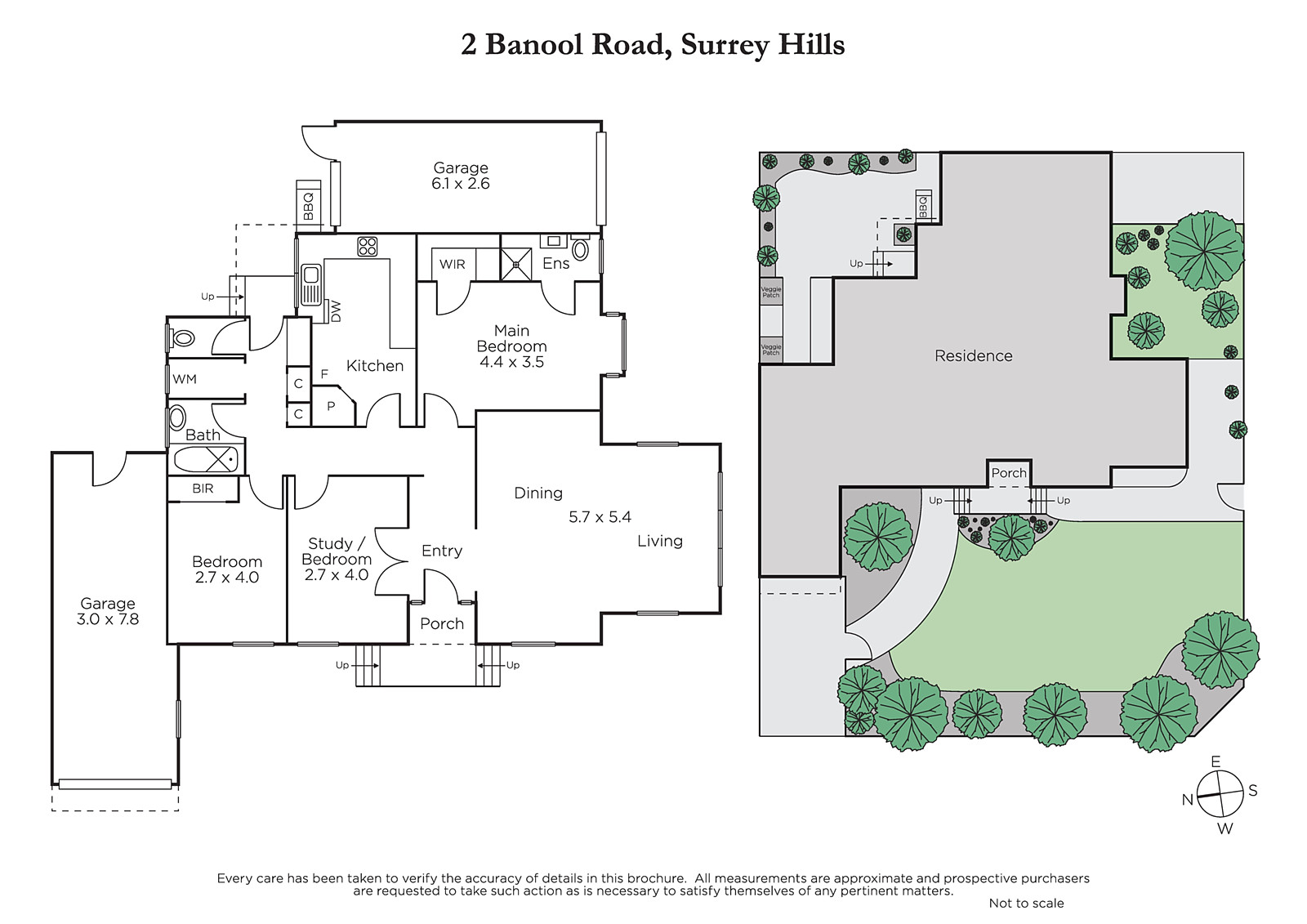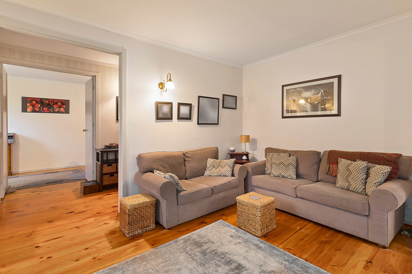 Behind a private leafy garden, the entrance hall featuring timber floors flows through to a generous living and dining room and a large separate well-equipped kitchen. The main bedroom with walk in robe and chic en suite complements two additional double bedrooms, family bathroom with separate toilet and a laundry. There is also a sunny north-facing rear courtyard with garden shed and a garage.
