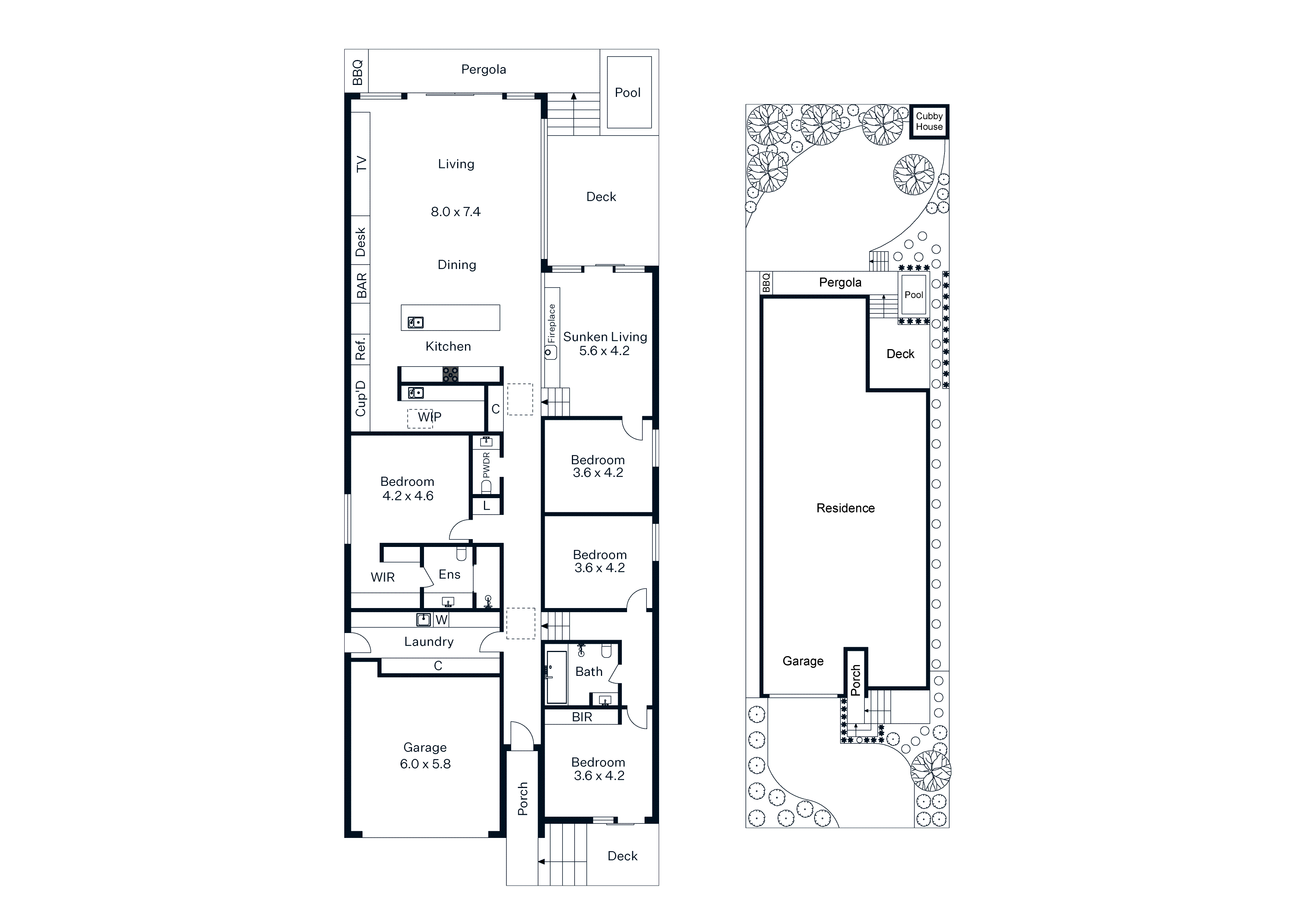 Stacker sliding doors open to an impressive alfresco area with its raked ceiling, barbecue with drink’s fridge, with steps down into the luxe solar/gas heated self cleaning plunge pool with stone coping. The expansive gardens, with outdoor shower and concrete cylinder veggie gardens has plenty of space to play with a versatile cubby style storage shed making it a child friendly place to play.