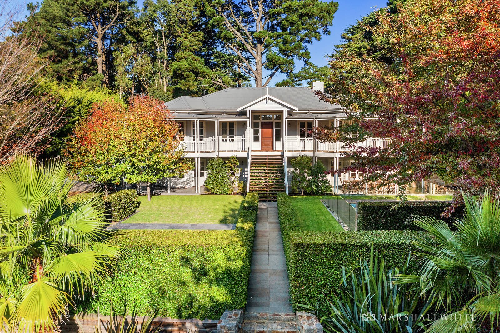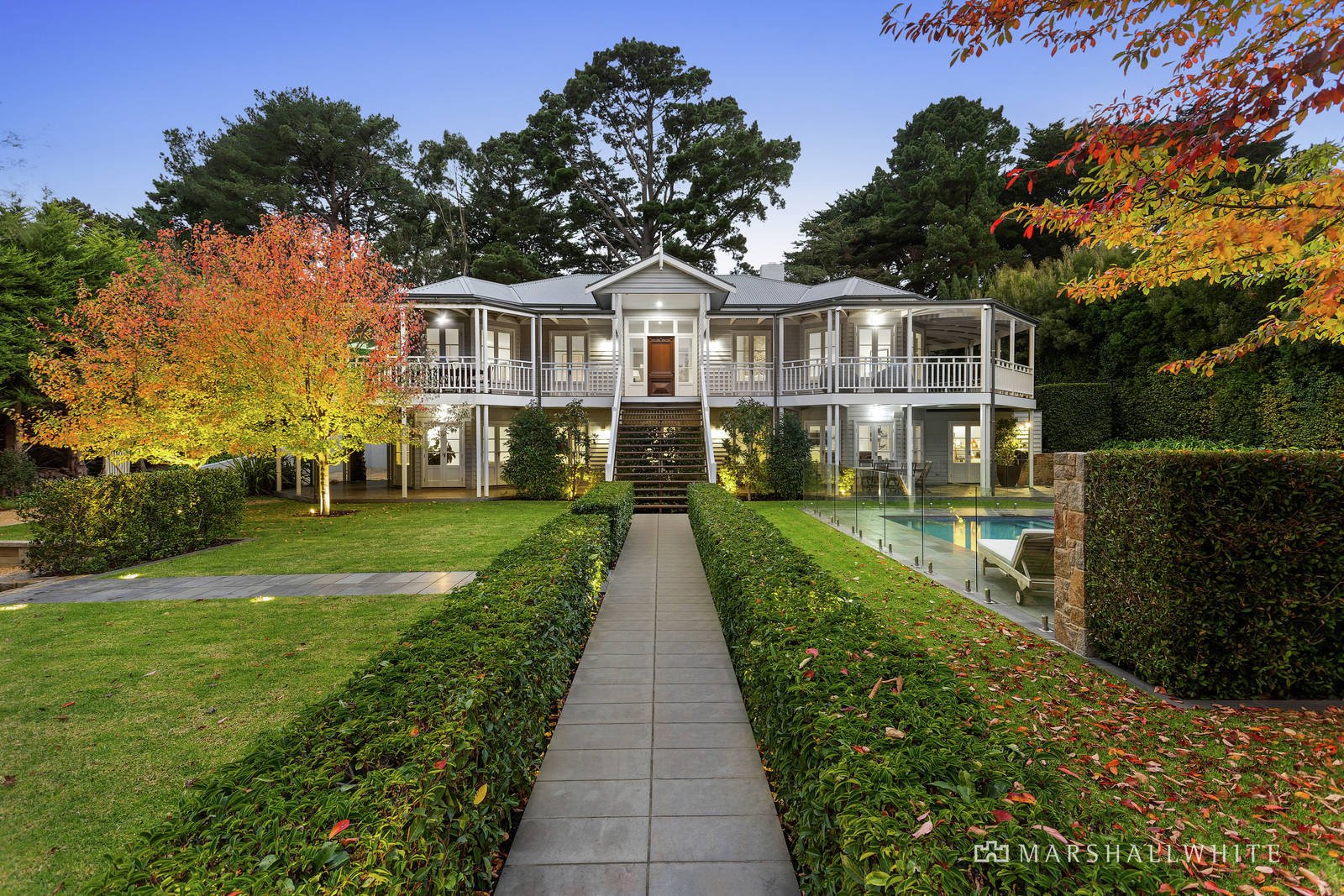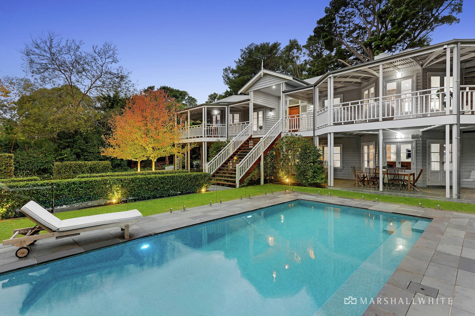 Appearing beyond manicured gardens of seasonal colour and hedged borders, this breathtaking Queenslander makes an exquisite statement in refined luxury and coastal bliss, inspired by the beach and the bush, with a sensational indoor-outdoor floor plan that captures natural views at every opportunity. A north-west orientation enhances the natural light flow, while French doors from every angle connect to laidback alfresco entertaining on the broad wrap-around verandah. A modern family is well catered for with a classic stone-bench kitchen plus butler's pantry/laundry, huge living areas on both levels including a formal lounge with a stone-stacked open fireplace and a generous ground-floor recreation area with a family room and pool cabana featuring a cedar-lined sauna, in-ground spa and kitchenette with a dishwasher.