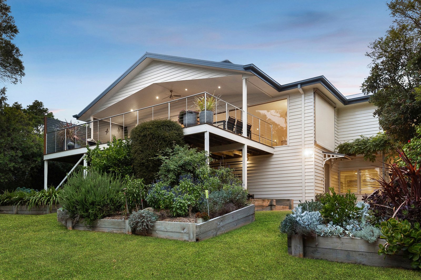 Cocooned in a lush border of greenery, the glorious native-inspired established low-maintenance gardens are a private oasis of verdant tranquillity, frequented by friendly kookaburras and parrots, and include an expansive lawn area, fish pond, gazebo, veggie patch, and citrus fruit trees.