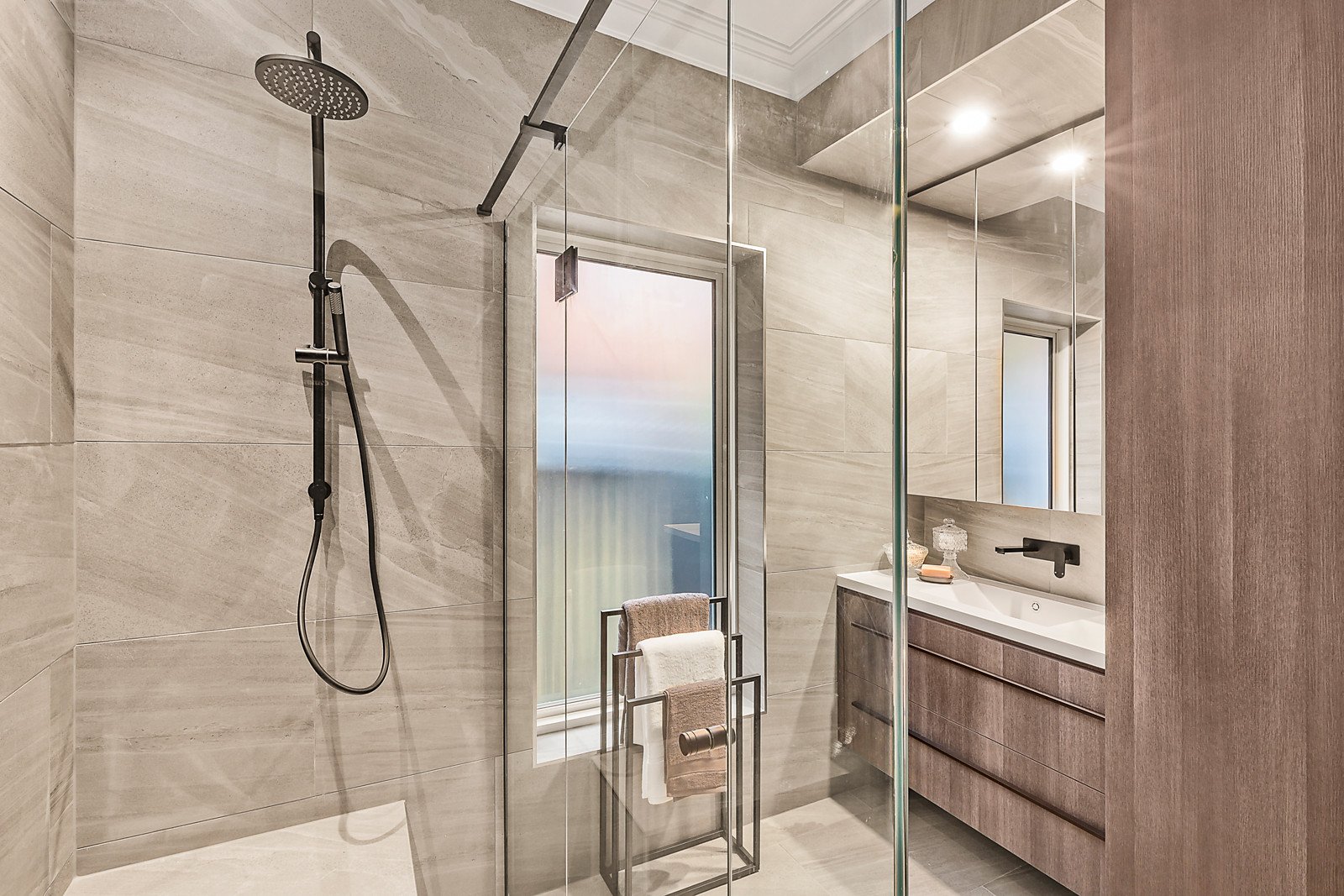 In a prestigious pocket of Brighton East, this spectacular single level domain presents a stylish contemporary take on an Art Deco home. Occupying an outstanding corner position, the home's open, light filled floorplan is equipped with sleek, refined finishes throughout, with landscaped outdoor entertaining and expansive proportions. A generous open plan living area features timber floors, a gas log fireplace and a hand crafted coffered ceiling, panelled feature wall and fireplace surround. The chic contemporary kitchen showcases Corian benchtops, Blum soft close drawers and doors and an array of Bosch appliances including gas cooktop, oven and integrated dishwasher. Two distinct decks provide versatile alfresco entertaining. A luxurious main bedroom benefits from walk in robes and a sparkling ensuite with double rain shower, separate freestanding bath and underfloor heating, accompanied by three additional bedrooms with built in robes. A second bathroom also features underfloor heating, as well as a rain shower and European laundry. A security system, ducted heating and cooling and a secure double carport behind remote controlled gate accessible via Ratho Avenue complete the home. Positioned steps from Hampton Street shops and dining, with outstanding schools such as St Leonard's College and Haileybury Brighton, Dendy Park, Brighton Public Golf Course and the bay all in easy walking distance.