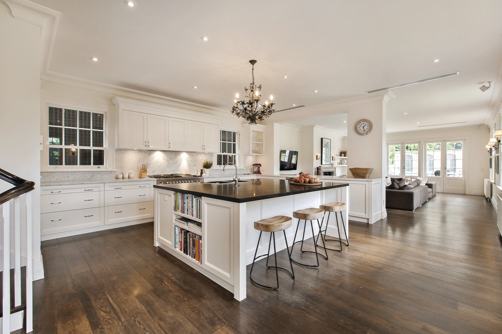 Lavishly proportioned, luxuriously appointed and styled with refined designer flair, all the living spaces open out to the picturesque gardens. Dark oak floors are introduced through the entrance hall, inviting sitting room with a gas fireplace, generous library also with a gas fire and gorgeous dining room. The premium gourmet kitchen showcases black granite and Cararra marble benches, Miele and Ilve appliances, integrated fridge/freezer and a fully appointed butler's pantry. The expansive family living room with roaring open fire opens out to a spectacular outdoor entertaining precinct with open fireplace and BBQ, heated pool, north-south mod grass tennis court and leafy private gardens surrounds. An abundance of well-zoned accommodation comprises the sumptuous main bedroom with designer en-suite featuring a freestanding bath, four additional fitted bedrooms, two stylish bathrooms and a large retreat. On the basement level there is a sensational fitted home cinema, temp. controlled wine cellar, bathroom, 2 large storage rooms and a 6-car garage.