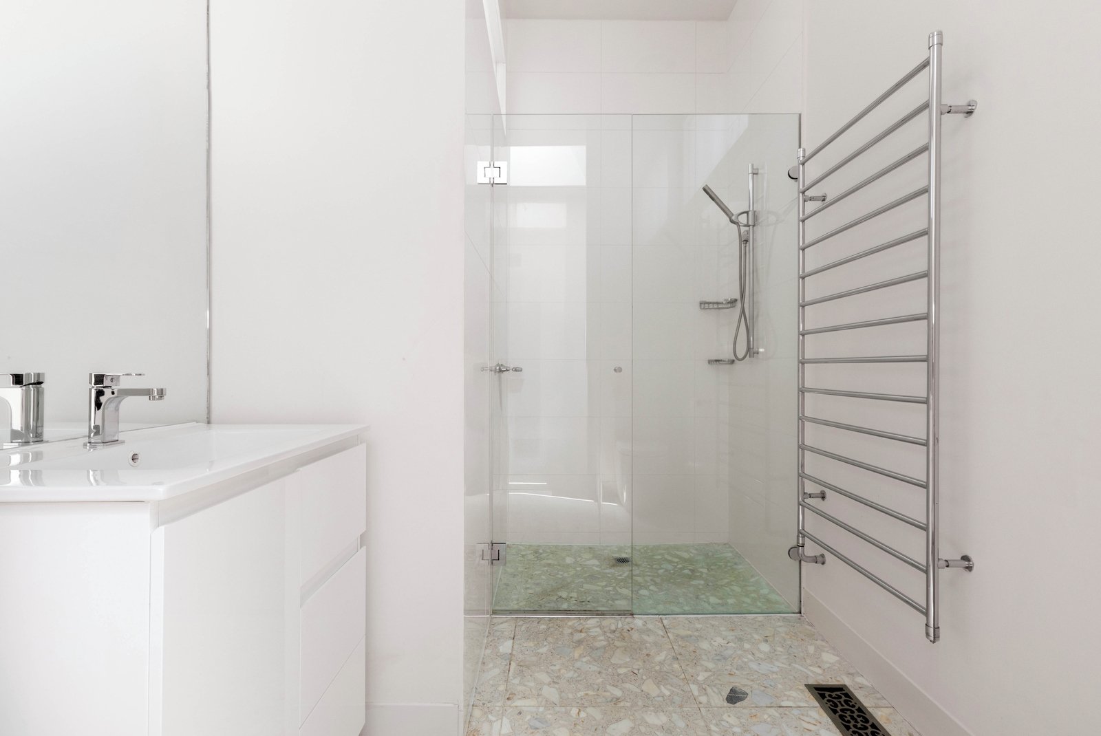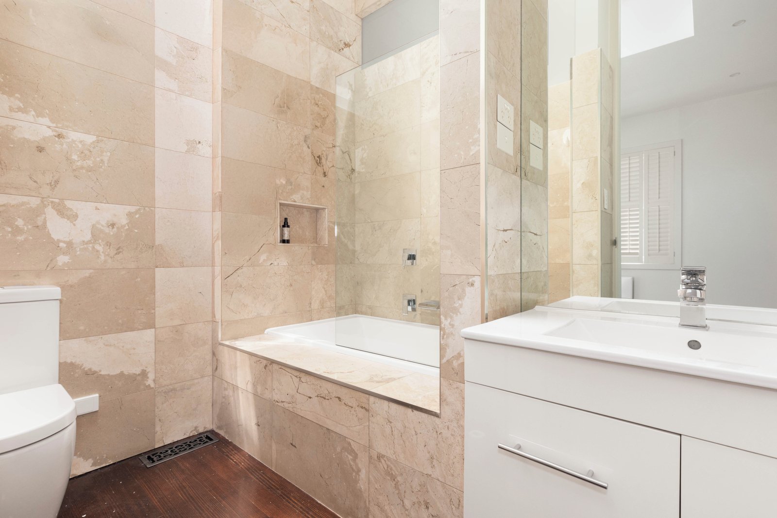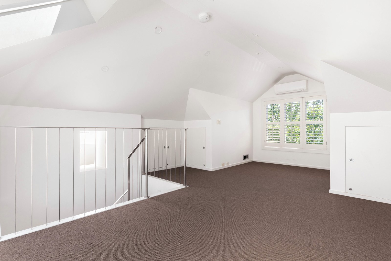 Accommodation is thoughtfully positioned on the ground floor. Two spacious bedrooms enjoy excellent natural light, leafy outlooks and easy access to a beautifully finished central bathroom wrapped in warm stone. Upstairs, the entire first level transforms into an expansive loft-style second living room — a superb retreat for working, relaxing or creating a quiet separation of space rarely offered in similar homes.