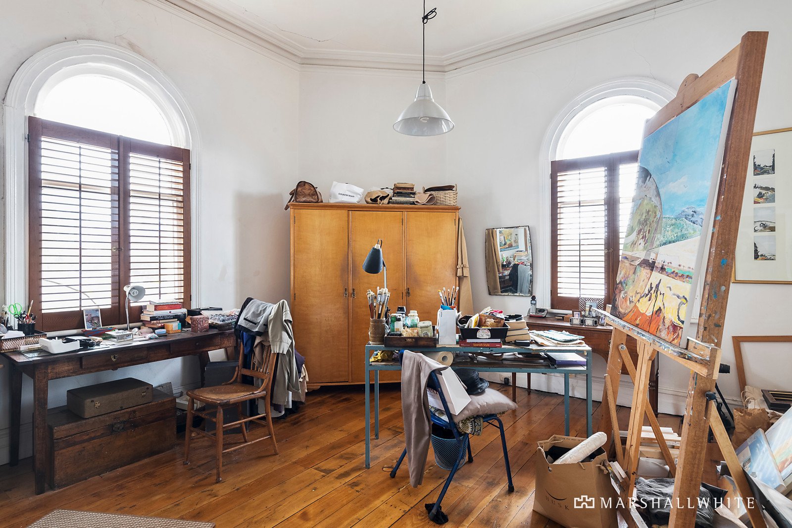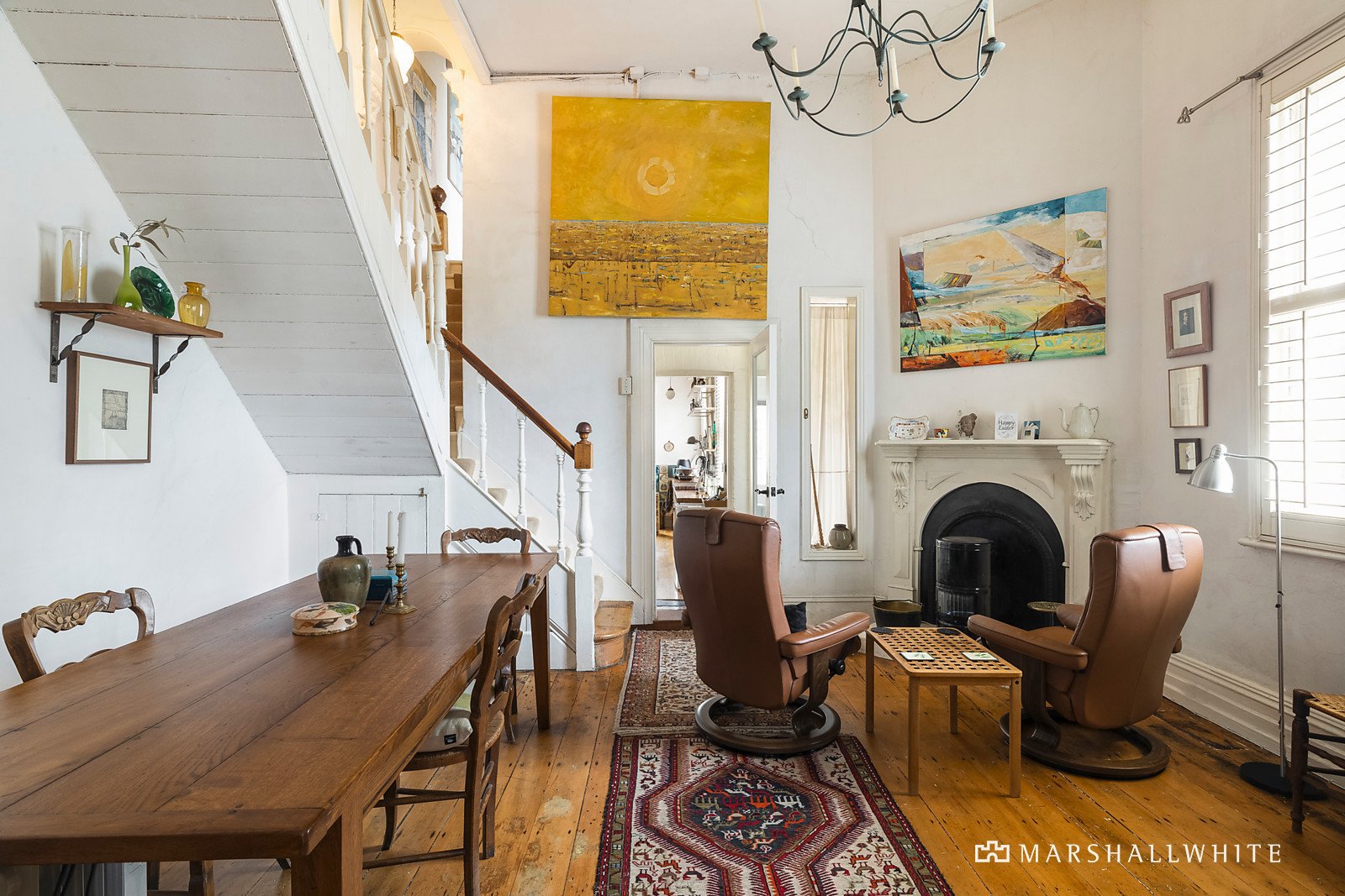 Upstairs, a trio of bedrooms - one with panoramic city views - share easy access to a pair of bathrooms. Under soaring ceilings and with three open fireplaces, as well as timber flooring, the sense of original charm here is most compelling.